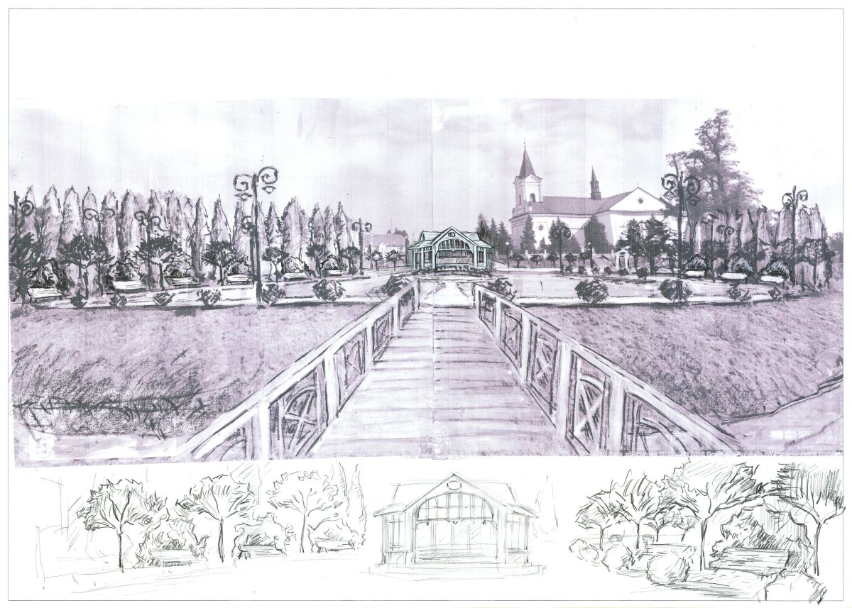 Do opracowania koncepcji odnowy centrum Rzezawy zgłosiły się dwa podmioty. Powołana przez wójta Mariusza Paleja specjalna komisja wybrała projekt przedstawiony przez firmę Draft Engineers Spółka z o.o. z Chrzanowa. Zakłada on stworzenie osi perspektywicznej, na której końcu eksponowany będzie budynek, w którym mieści się parafia p.w. Trójcy Przenajświętszej i św. Leopolda. Początkiem tej osi będzie natomiast mostek na rzece otwierający perspektywę na mającą powstać estradę w formie altany, której zadaszenie będzie nawiązywać do XIX-wiecznej architektury parkowej. Ma do niej prowadzić trakt spacerowy, który będzie wyznaczony ozdobnymi drzewami oraz krzewami, pośród których znajdzie się również miejsce na fontannę. Na placu ma powstać także plac zabaw. Ma on nawiązywać do architektury świątyni. W jego centralnym punkcie jest planowana platforma przypominająca swym wyglądem istniejącą wieżę kościelną, w której środku będzie znajdować się zjeżdżalnia. Na placu zabaw znalazłyby się ponadto m.in. liczne pomosty, które byłyby ze sobą połączone drabinkami linowymi, na których końcu planowana jest ścianka wspinaczkowa. Projekt zakłada także przebudowę istniejącej kładki zlokalizowanej obok placu zabaw z piaskownicą. Warto również podkreślić, że planowany jest montaż paneli fotowoltaicznych. Uzyskana w ten sposób energia elektryczna zasilałaby lampy LED i fontannę.