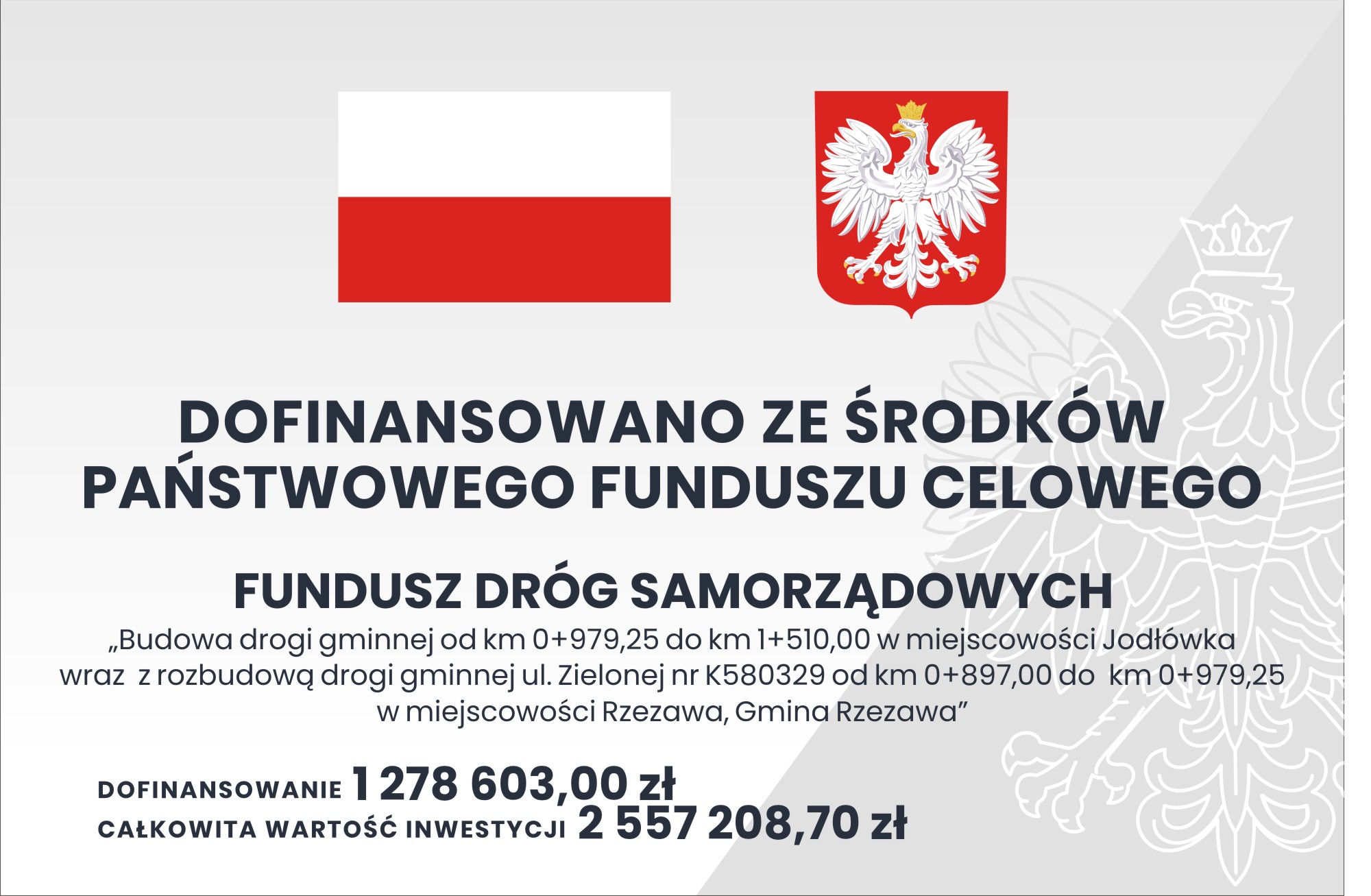 ROZBUDOWA (PRZEDŁUŻENIE) DROGI GMINNEJ UL. ZIELONEJ NR K580329 KLASY D NA ODCINKU OD KM 0+897,00 DO KM 0+979,25 W MIEJSCOWOŚCI RZEZAWA, BUDOWA NOWEGO ODCINKA DROGI GMINNEJ NR K580329 KLASY D OD KM 0+979,25 DO KM 1+510,00 W NIEJSCOWOŚCI JODŁÓWKA WRAZ Z OŚWIETLENIEM, ODWODNIENIEM ORAZ ZABEZPIECZENIEM ISTNIEJĄCEJ INFRASTRUKTURY TECHNICZNEJ, GMINA RZEZAWA