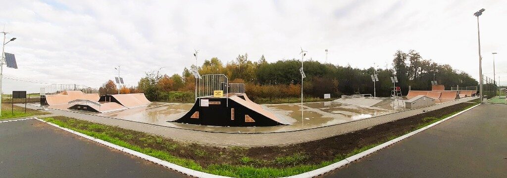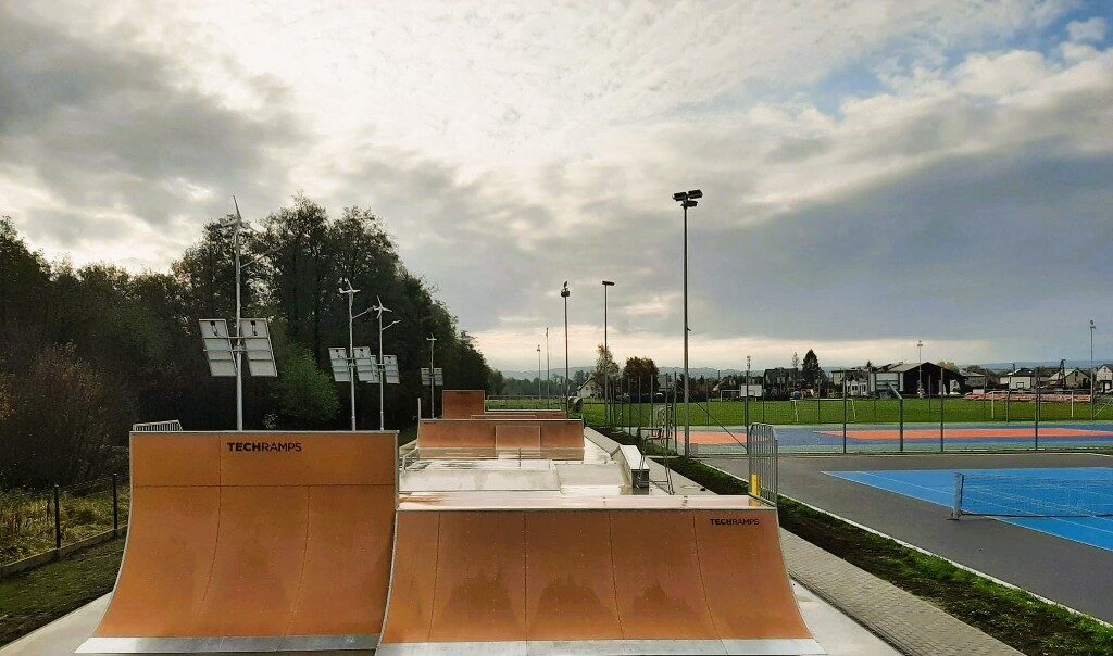 W ramach inwestycji zostaną także zamontowane lampy hybrydowe z panelami fotowoltaicznymi i turbinami. Powstanie ponadto chodnik prowadzący do skateparku.