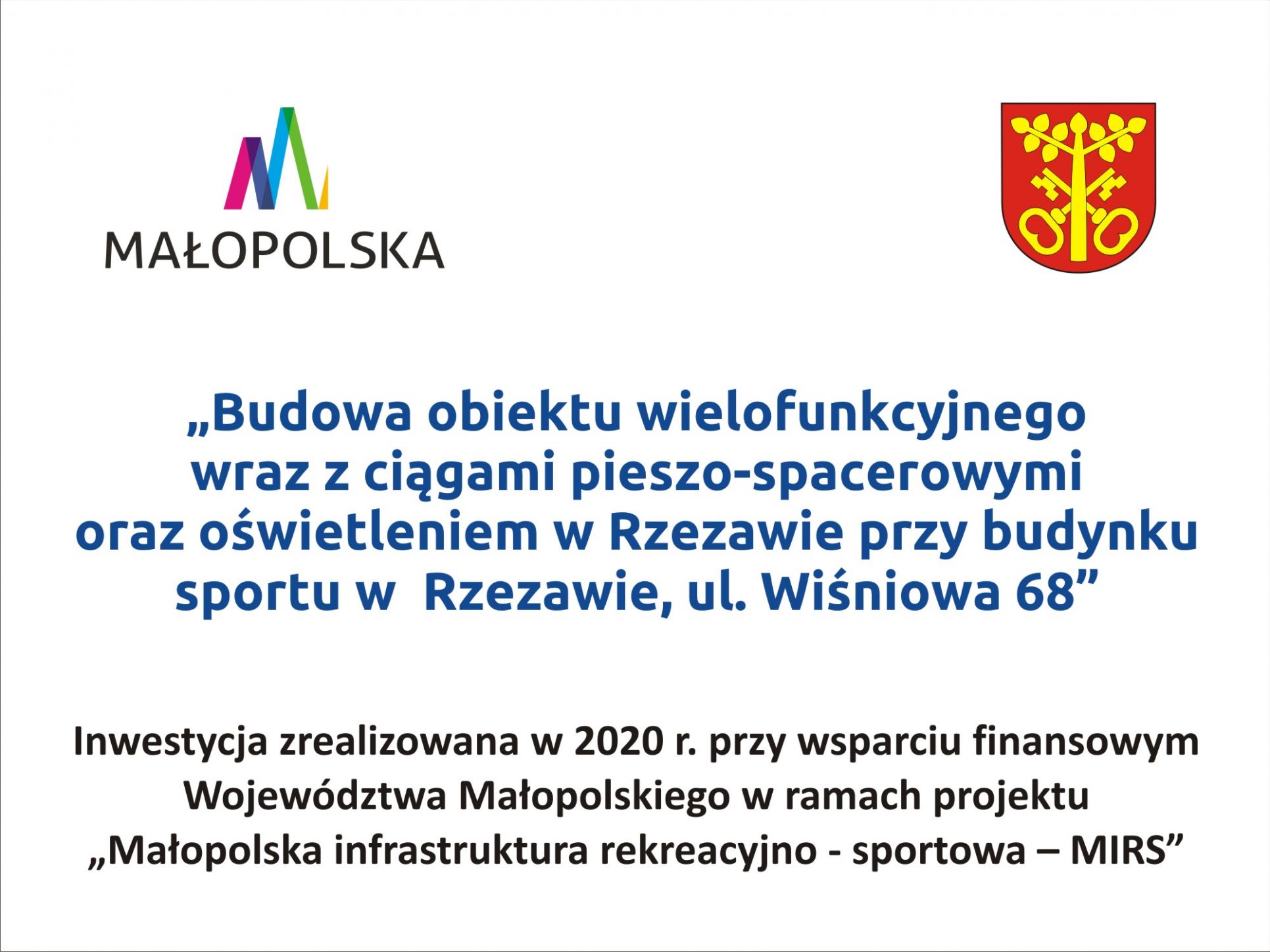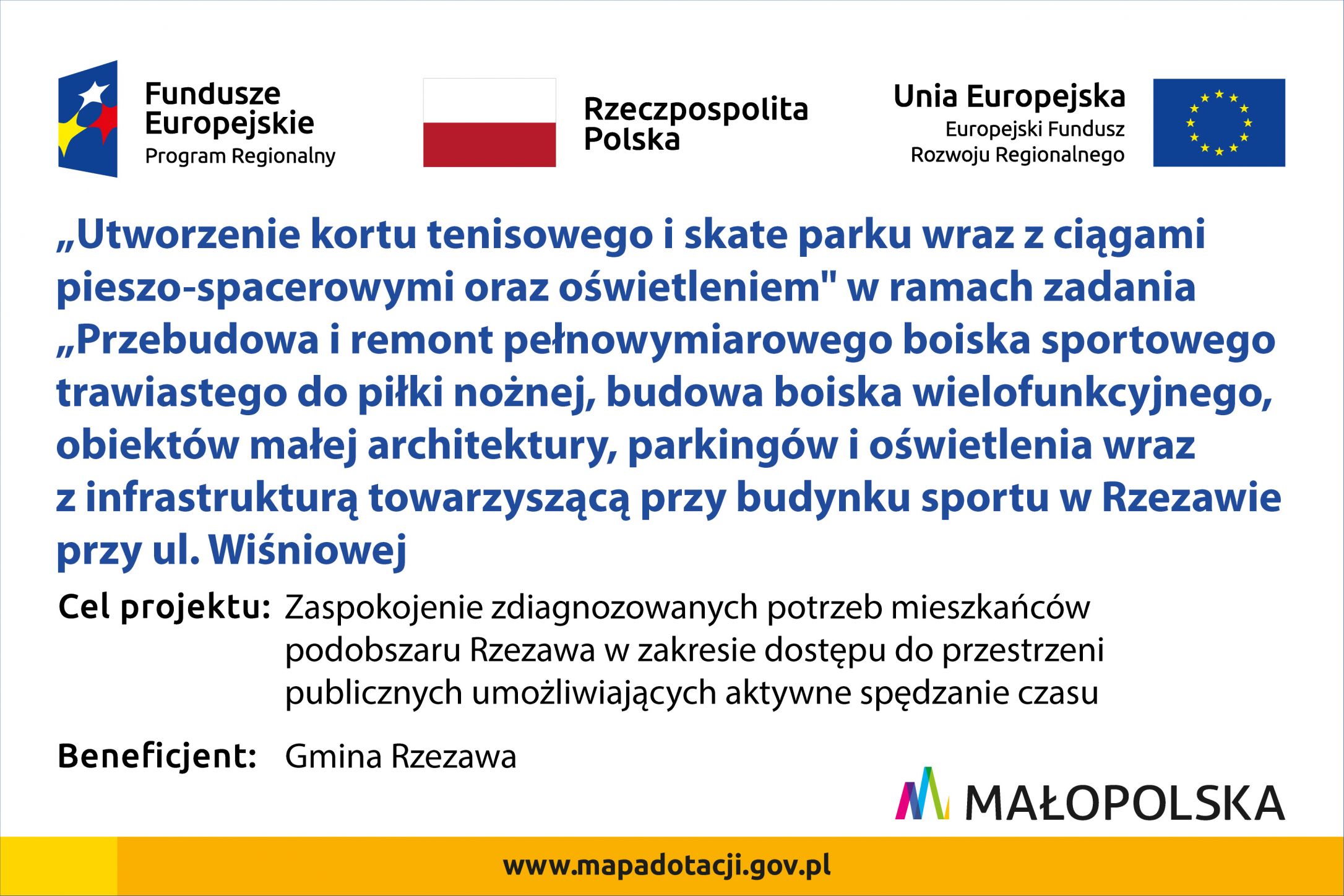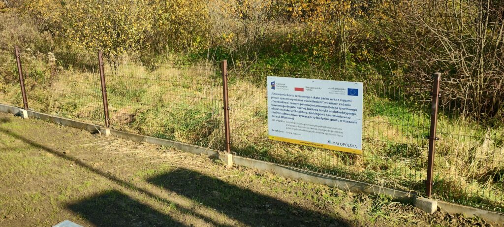 przy ul. Wiśniowej” współfinansowane ze środków unijnych w ramach Działania 11.2 Odnowa obszarów wiejskich, Oś Priorytetowa 11 Rewitalizacja przestrzeni regionalnej, Regionalnego Programu Operacyjnego Województwa Małopolskiego na lata 2014-2020.