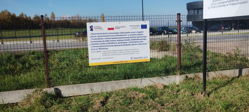 Zadanie pn. „Utworzenie kortu tenisowego i skate parku wraz z ciągami pieszo-spacerowymi oraz oświetleniem" w ramach zadania „Przebudowa i remont pełnowymiarowego boiska sportowego trawiastego do piłki nożnej, budowa boiska wielofunkcyjnego, obiektów małej architektury, parkingów i oświetlenia wraz z infrastrukturą towarzyszącą przy budynku sportu w Rzezawie