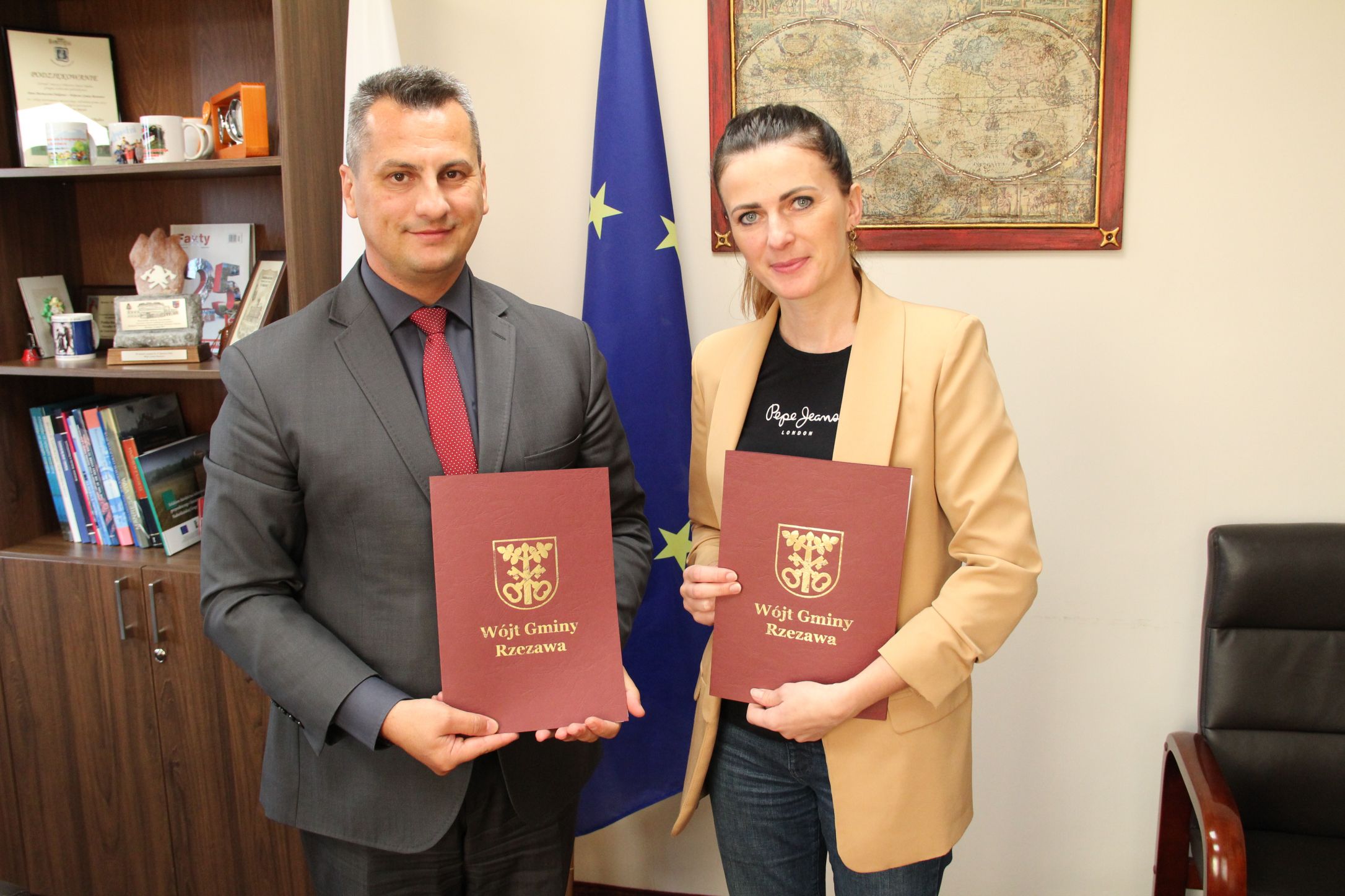 Podpisanie umowy z Wykonawcą na budowę skateparku odbyło się w siedzibie Urzędu Gminy Rzezawa.