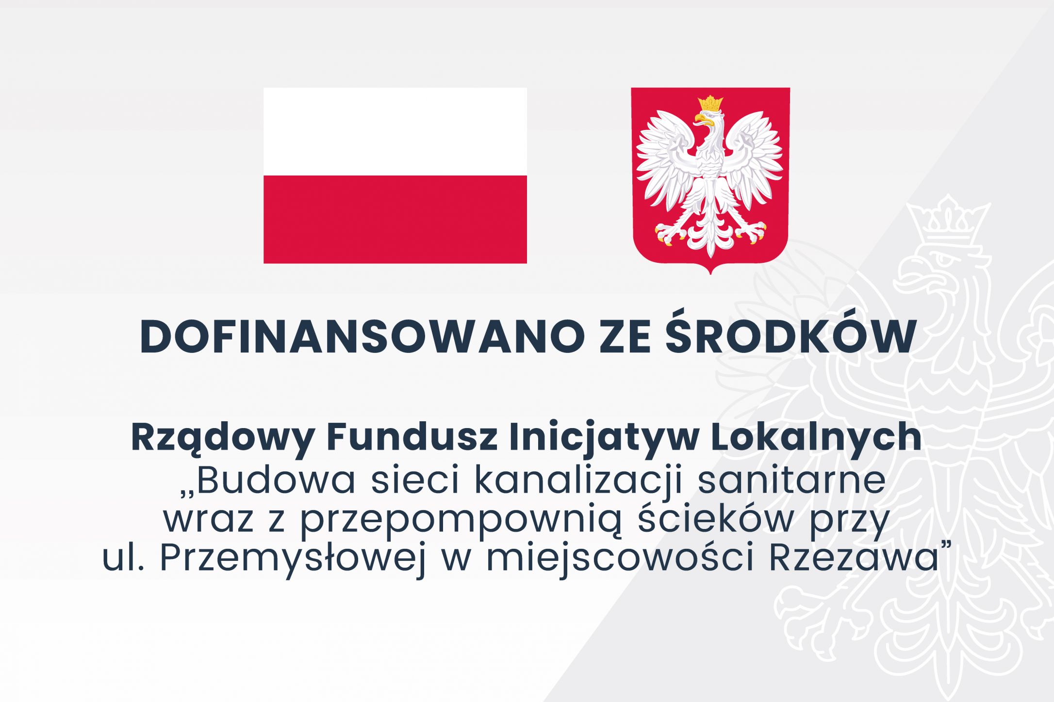 Gmina Rzezawa otrzymała dofinansowanie na realizacje zadania pn. „Budowa sieci kanalizacji sanitarnej wraz z przepompownią ścieków przy ul. Przemysłowej w miejscowości Rzezawa” w ramach Rzadowego Funduszu Inicjatyw Lokalnych w kwocie 500 000,00 zł. - II NABÓR