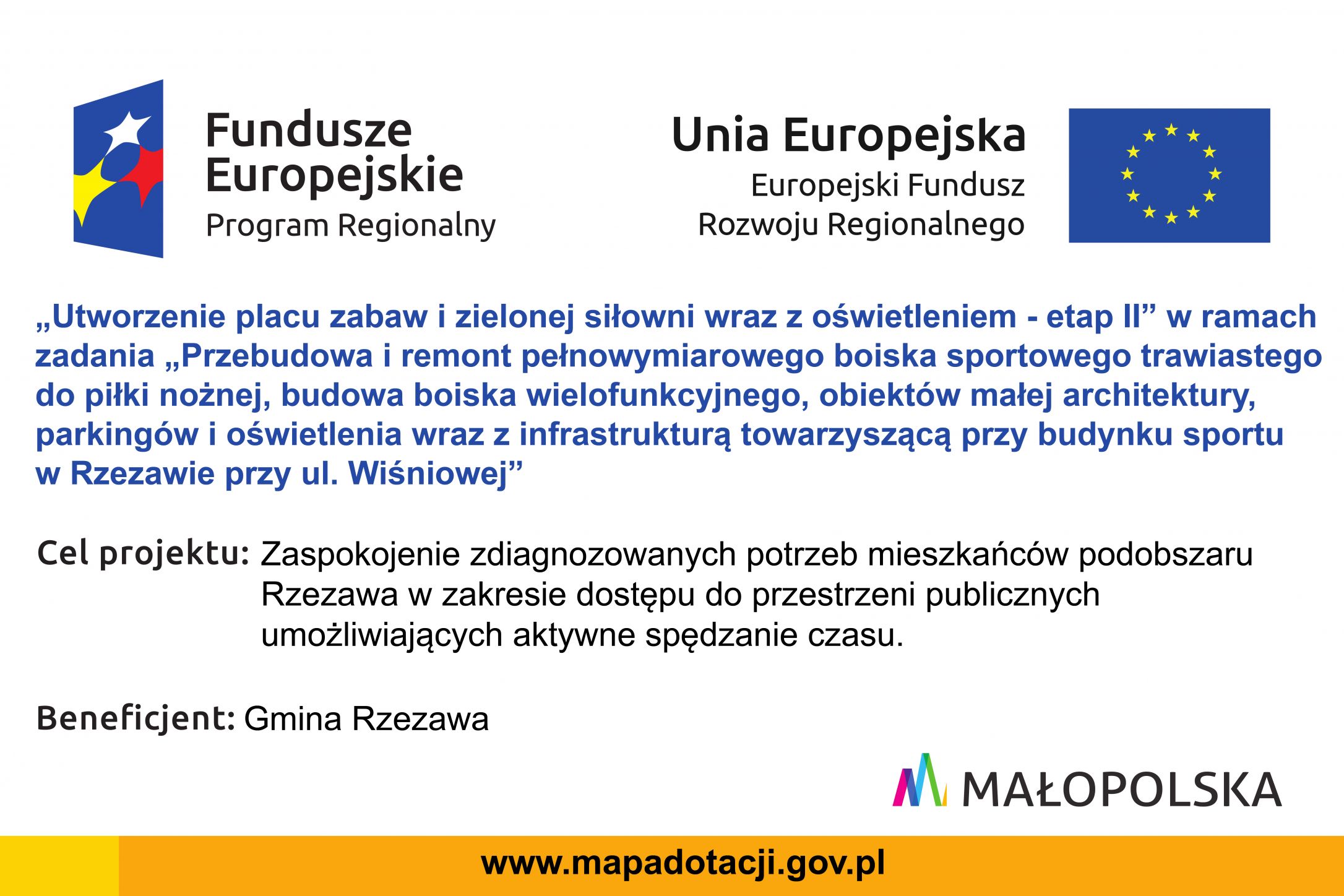 przy ul. Wiśniowej” współfinansowane ze środków unijnych w ramach Działania 11.2 Odnowa obszarów wiejskich, Oś Priorytetowa 11 Rewitalizacja przestrzeni regionalnej, Regionalnego Programu Operacyjnego Województwa Małopolskiego na lata 2014-2020.