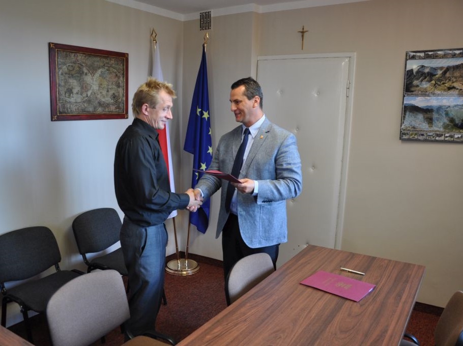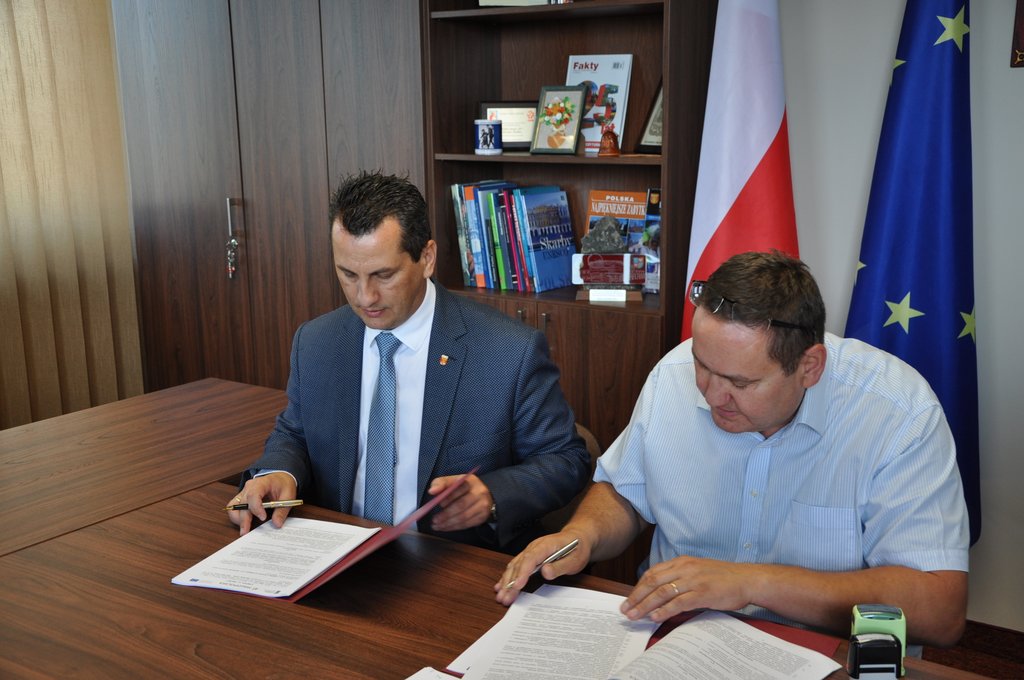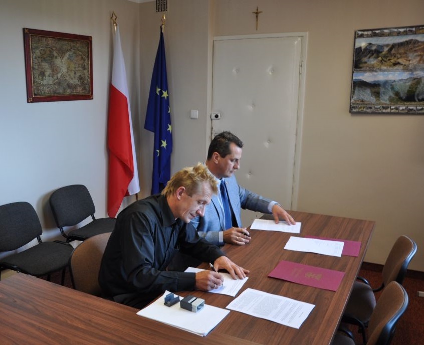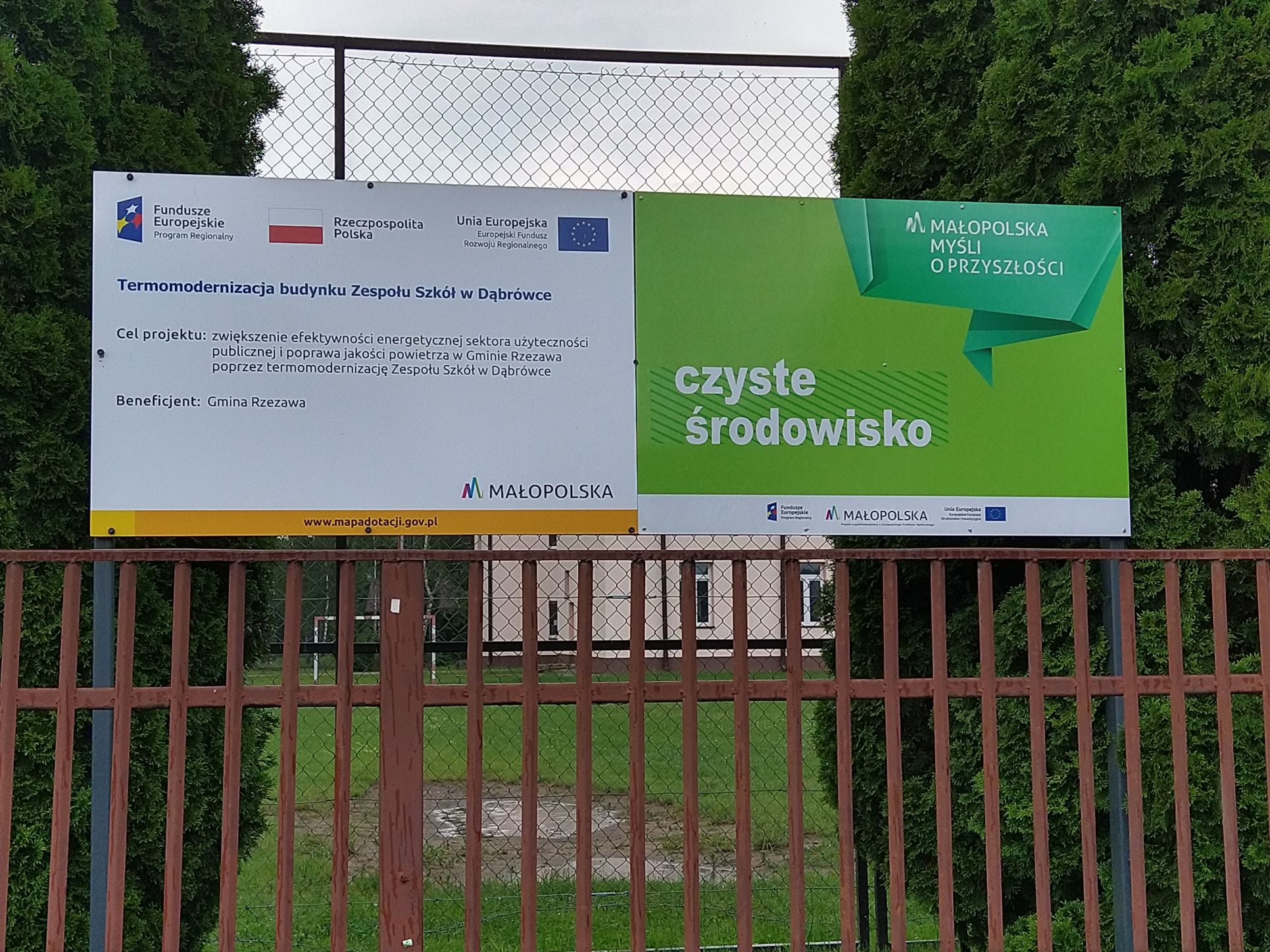 Już niebawem Zespół Szkół w Dąbrówce zmieni swój wygląd. W ramach podpisanej umowy wykonawca wykona wymianę stolarki okiennej drewnianej skrzynkowej na okna z pcv, wymianę stolarki drzwiowej zewnętrznej stalowej na aluminiową, modernizację c.o. oraz c.w.u, docieplenie stropu ostatniej kondygnacji oraz docieplenie ścian zewnętrznych wraz z wykonaniem wyprawy elewacyjnej. Wójt Gminy Mariusz Palej podpisał dziś umowę z wykonawcą zadania. Termin zakończenia realizacji zadania przypada na dzień 13.X.2017 roku. Termomodernizacja budynku Zespołu Szkół w Dąbrówce kosztować będzie 510.235,80 zł, dofinansowanie z RPO wyniesie ok. 378.040,90 zł.