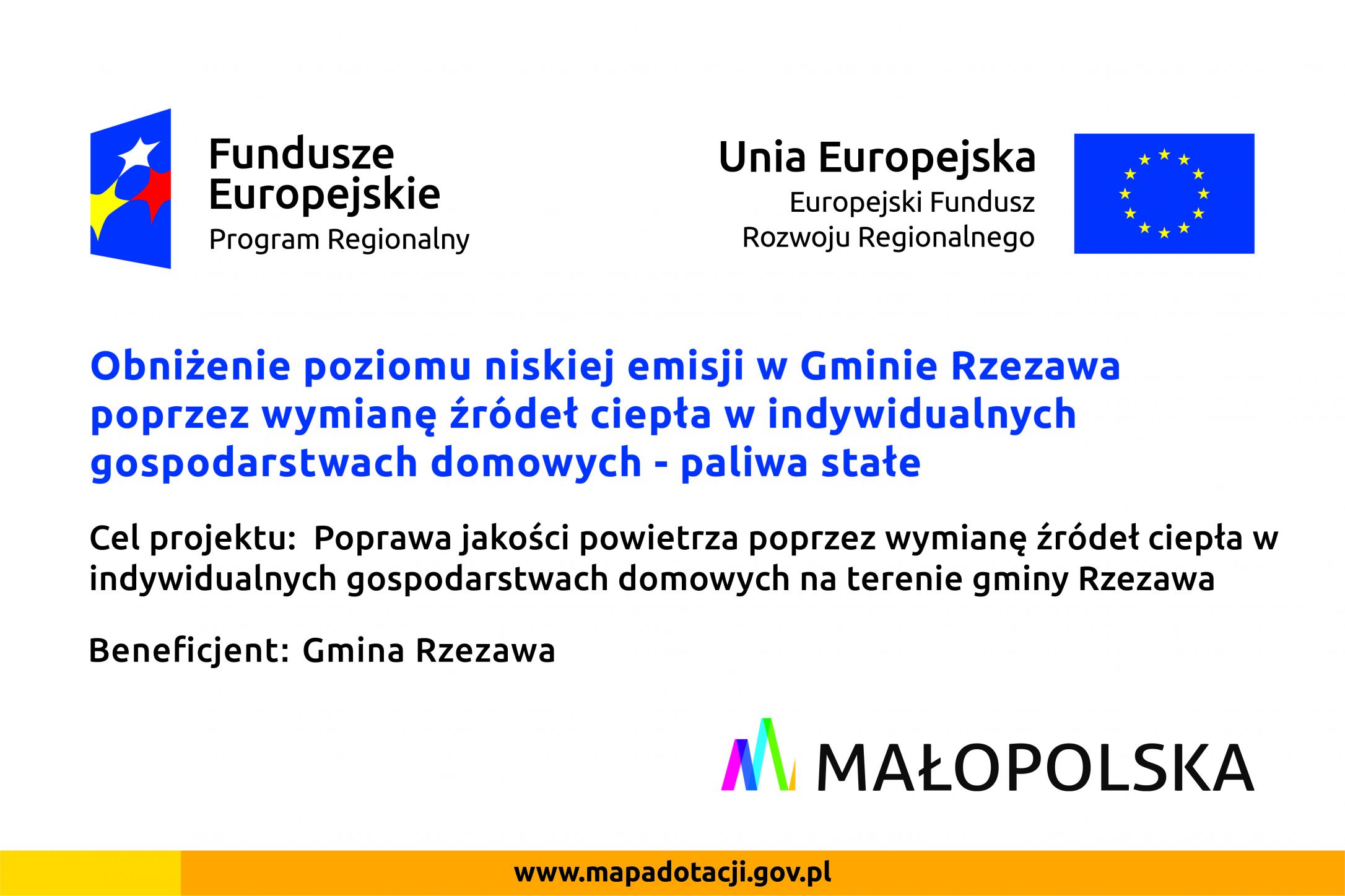 oraz pn. „Obniżenie poziomu niskiej emisji w Gminie Rzezawa poprzez wymianę źródeł ciepła w indywidualnych gospodarstwach domowych – paliwa stałe” zostały pozytywnie ocenione przez Urząd Marszałkowski Województwa Małopolskiego i wybrane