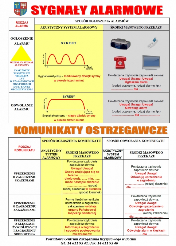- sygnały alarmowe, informujące o rodzaju zagrożenia;