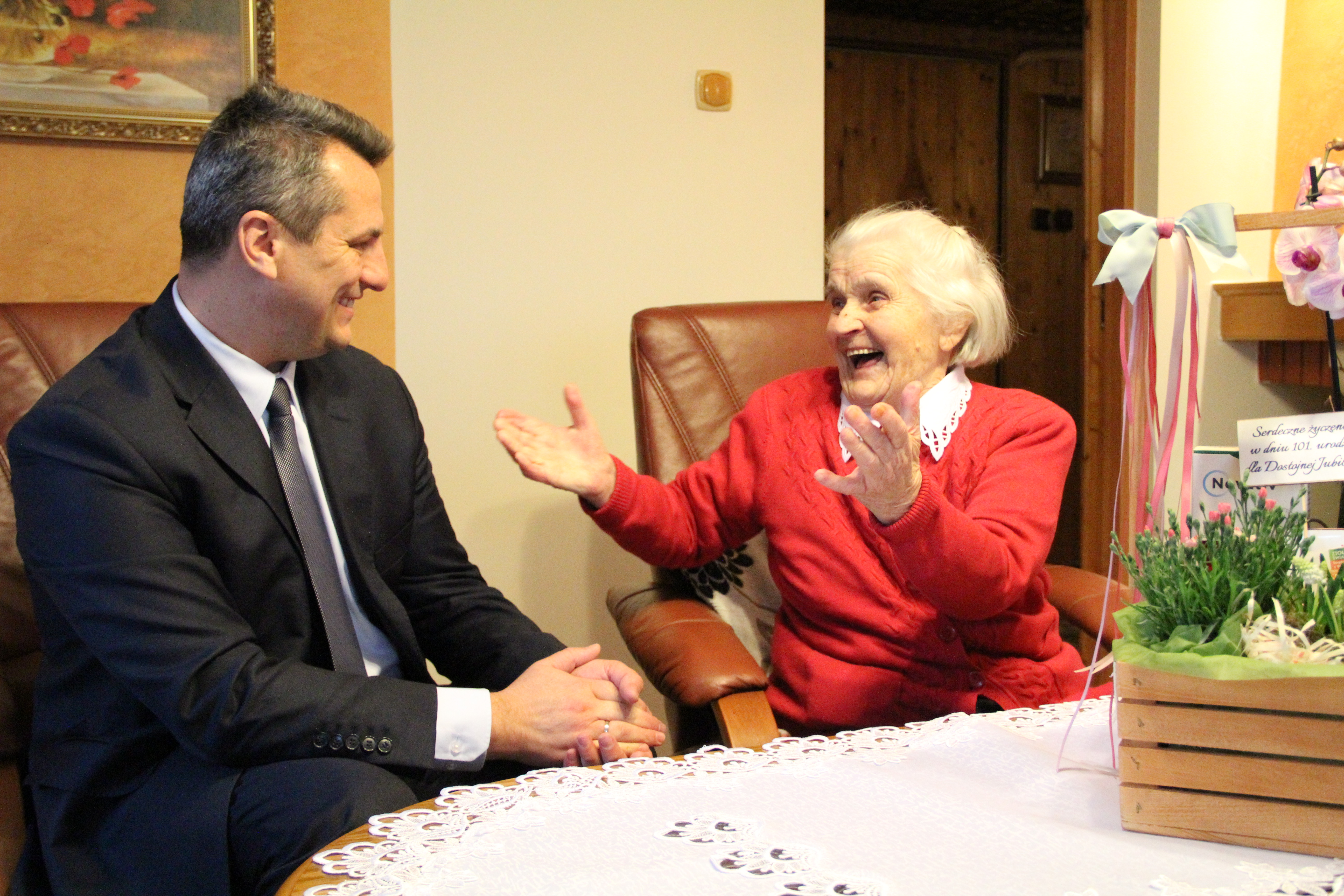 Pani Maria jak na swój wiek jest w znakomitej wręcz formie. Podczas spotkania Solenizantka była niezwykle wzruszona i szczęśliwa. Tryskała bardzo dobrym humorem. Zaprosiła nawet Wójta na swoje kolejne urodziny, które odbędą się już za rok.
