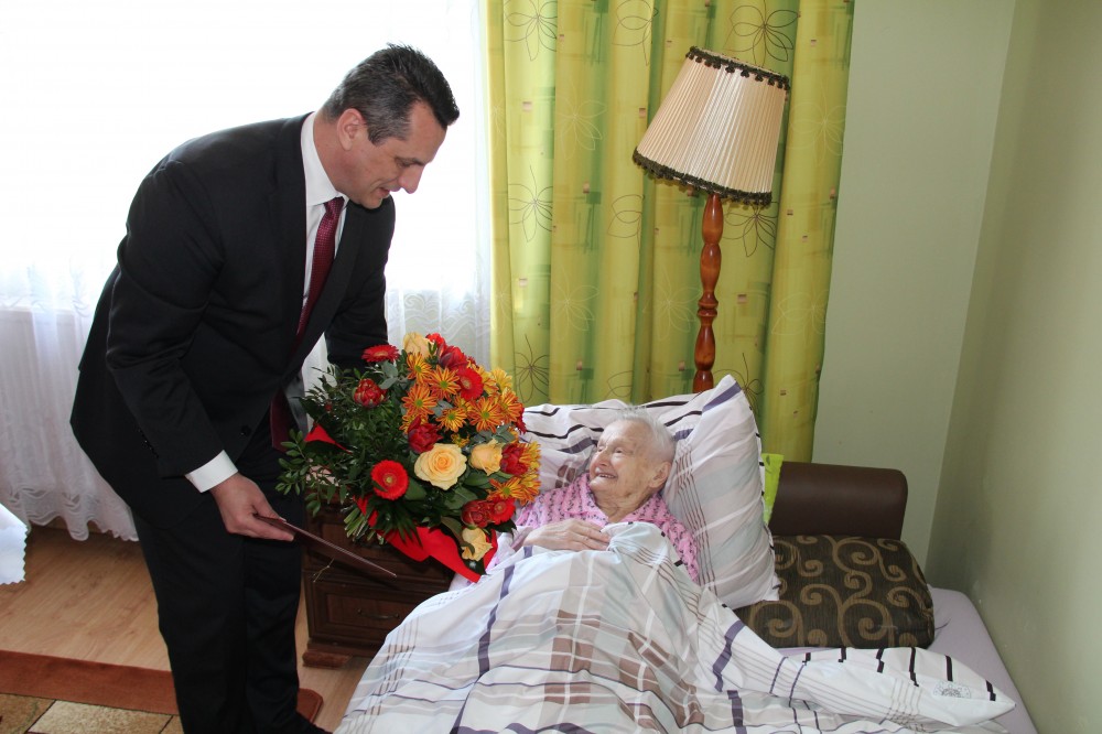 Wójt Mariusz Palej w imieniu własnym oraz całej społeczności Gminy życzy Pani Bronisławie dużo zdrowia, szczęścia, zadowolenia, Bożej Opatrzności oraz wszelkiej pomyślności na kolejne lata życia.