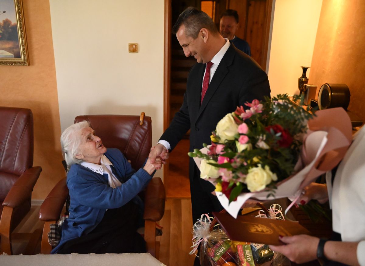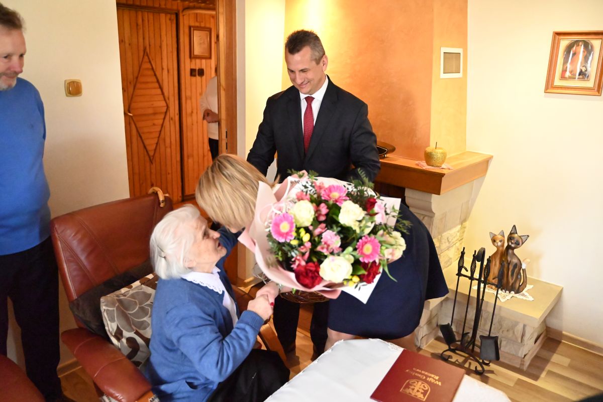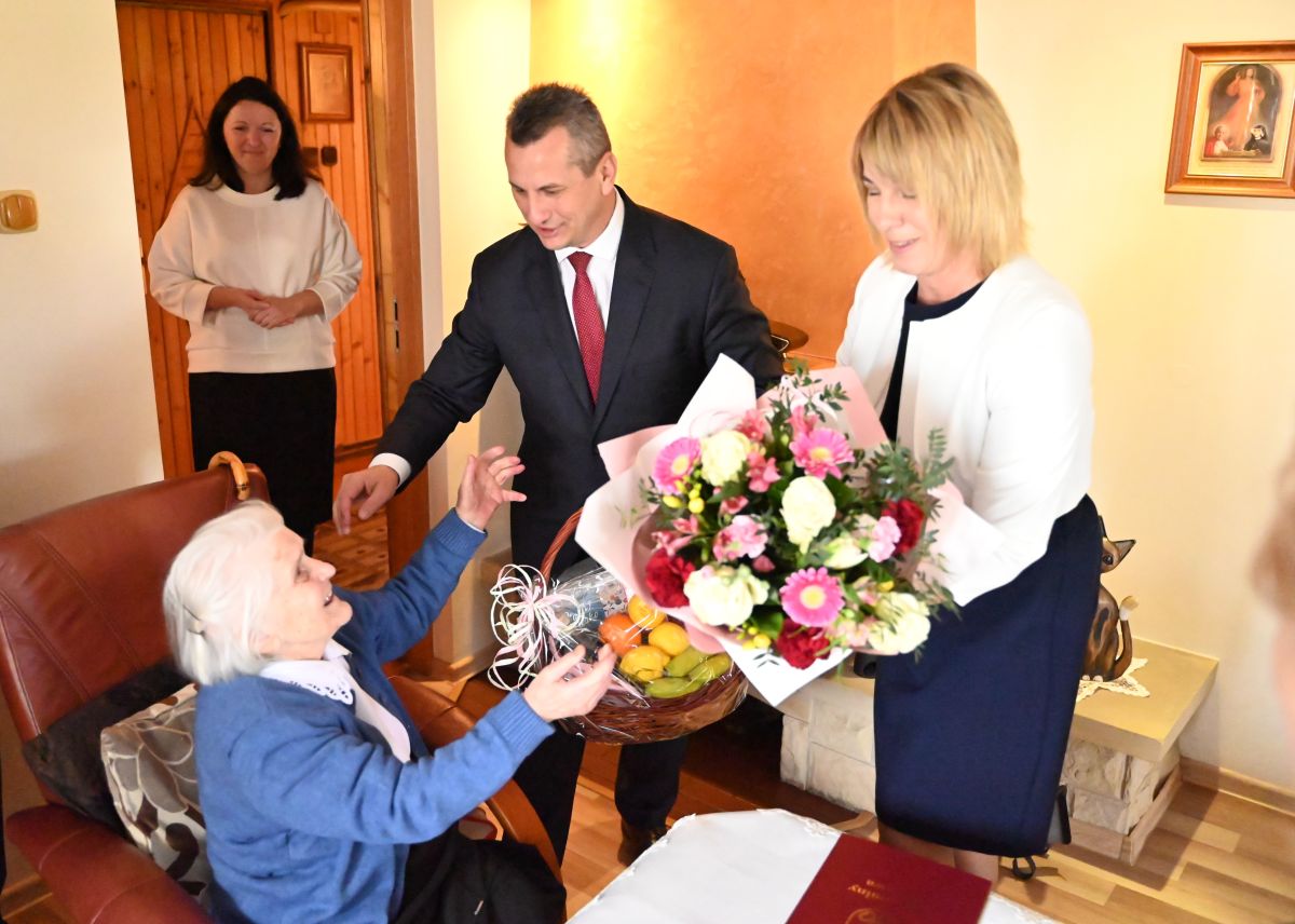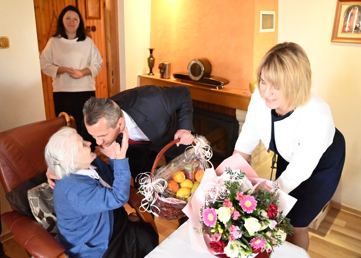 Niezwykłego jubileuszu doczekała mieszkanka Buczkowa Pani Maria Słonina. W piątek, 31 marca 2023 roku obchodziła swoje 102. urodziny. Ten piękny dzień był momentem, o którym pamiętali nie tylko jej najbliżsi. Czcigodnej Solenizantce życzenia złożyła delegacja z Urzędu Gminy Rzezawa – Wójt Mariusz Palej wraz z Kierownikiem Urzędu Stanu Cywilnego Dorotą Wągrodą. Obecna była także Sołtys Buczkowa Czesława Budyn.