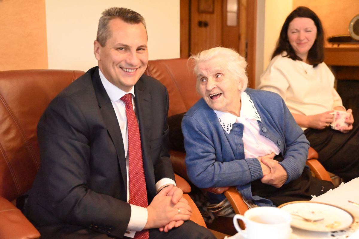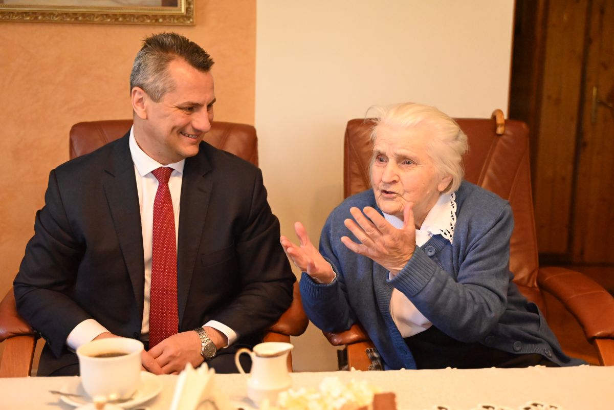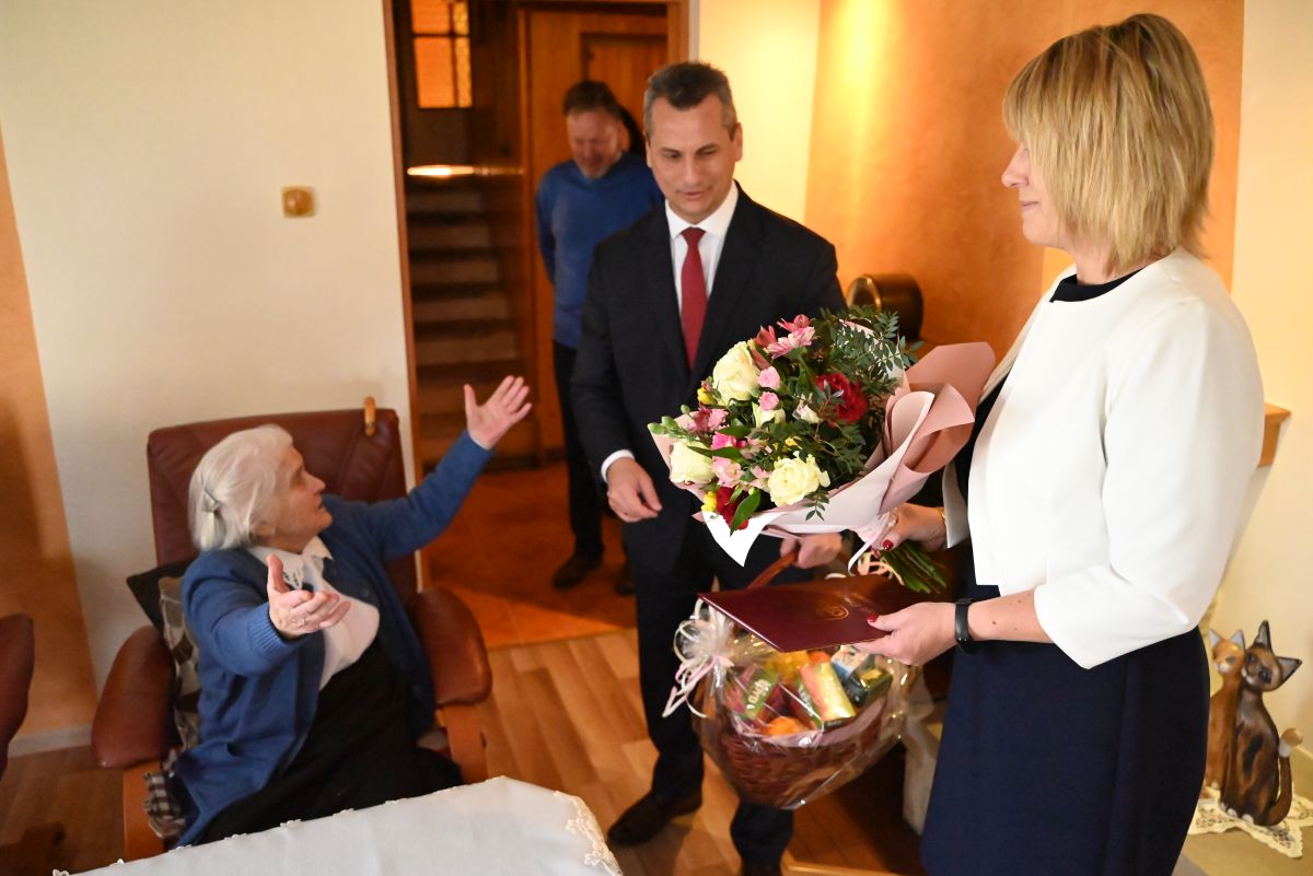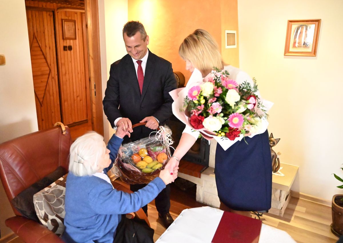 Niezwykłego jubileuszu doczekała mieszkanka Buczkowa Pani Maria Słonina. W piątek, 31 marca 2023 roku obchodziła swoje 102. urodziny. Ten piękny dzień był momentem, o którym pamiętali nie tylko jej najbliżsi. Czcigodnej Solenizantce życzenia złożyła delegacja z Urzędu Gminy Rzezawa – Wójt Mariusz Palej wraz z Kierownikiem Urzędu Stanu Cywilnego Dorotą Wągrodą. Obecna była także Sołtys Buczkowa Czesława Budyn.