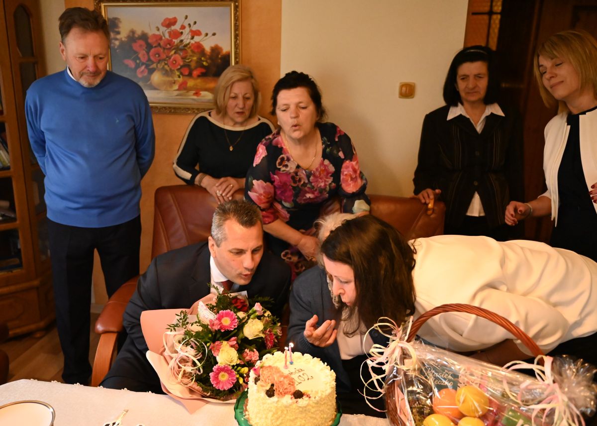 Spotkanie przebiegało w bardzo przyjemnej atmosferze. Pani Maria jak na swój wiek jest w znakomitej wręcz formie. Podczas spotkania Solenizantka była niezwykle wzruszona i szczęśliwa. Tryskała bardzo dobrym humorem.