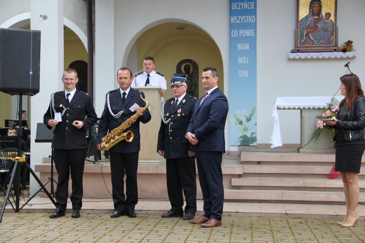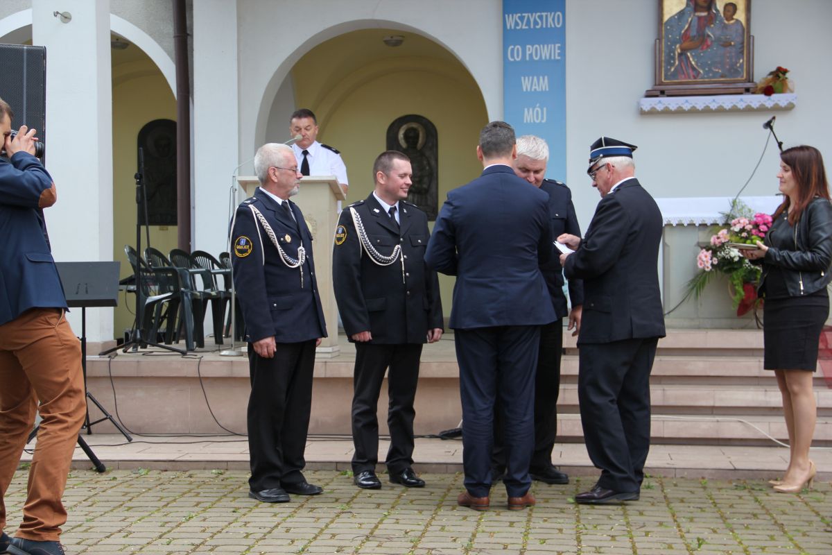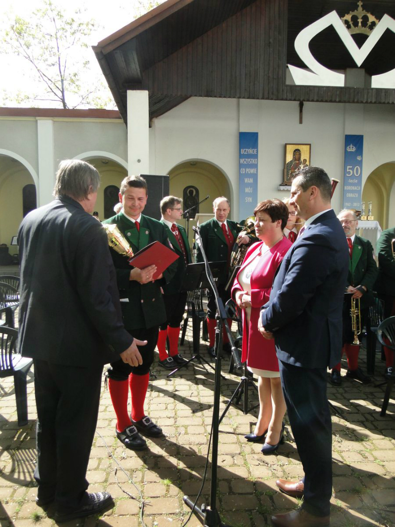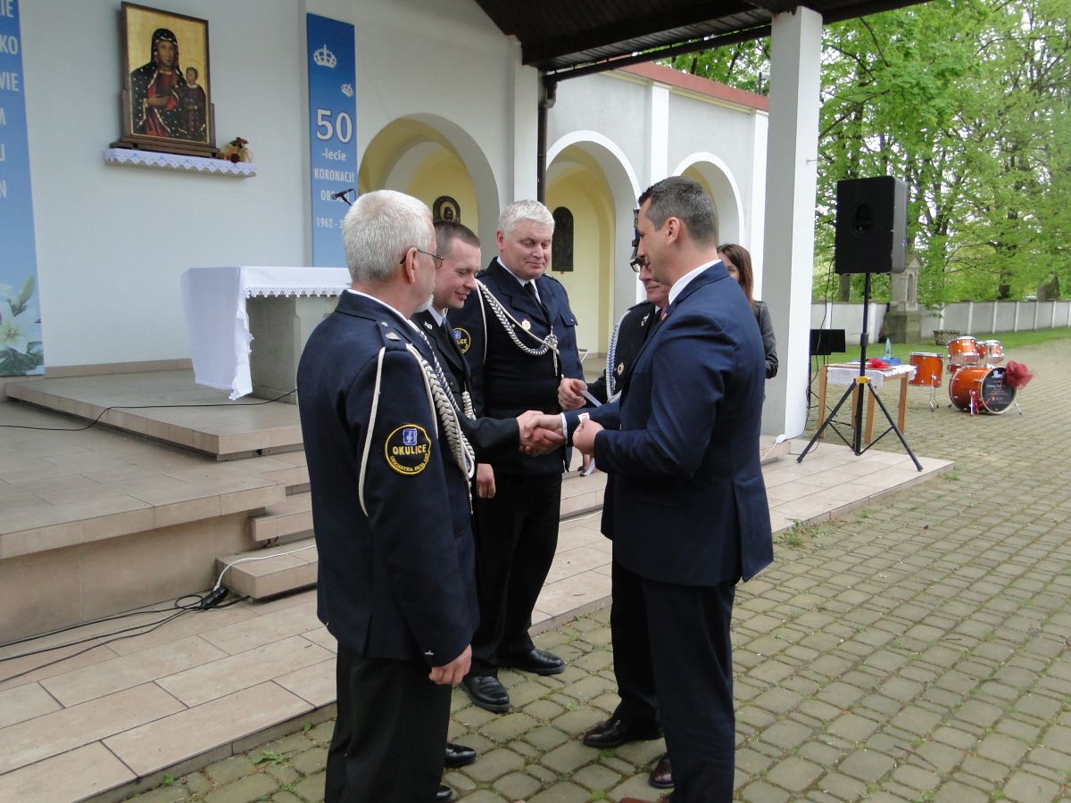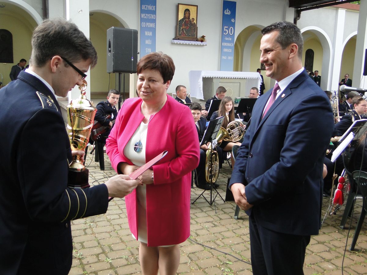 Jak na jubileusz przystało przyszedł także czas na życzenia i prezenty. Pan Wójt Mariusz Palej przekazał słowa uznania i gratulacje dla wszystkich osób tworzących orkiestrę na przestrzeni tych lat oraz podarował ufundowaną przez samorząd gminy wspaniałą perkusję. Kolejno gratulacje złożyli Starosta Bocheński Pan Ludwik Węgrzyn, kapelmistrzowie poszczególnych orkiestr, Dyrektor GCKCziS w Rzezawie oraz Zarząd Orkiestry z Krasocina. Życzenia złożyli również Dyrektor Miejskiego Centrum Kultury „Sokół” z Nowego Sącza Pan Antoni Malczak i Stanisław Migacz – główny specjalista do spraw orkiestr dętych. Następnie członkowie Orkiestry Dętej z Okulic przyjęli z rąk Prezesa Zarządu Oddziału Gminnego Związku OSP RO w Rzezawie Pana Krzysztofa Kołodzieja oraz Wójta Gminy Rzezawa Pana Mariusza Paleja odznaczenia za wysługę lat. Na zakończenie koncertu Prezes Orkiestry Dętej Okulie Pan Krzysztof Dziadowiec podziękował wszystkim za pomoc i zaangażowanie w przygotowaniu tej uroczystości jak również za pracę na przestrzeni tych lat poprzednim członkom orkiestry oraz kapelmistrzom.