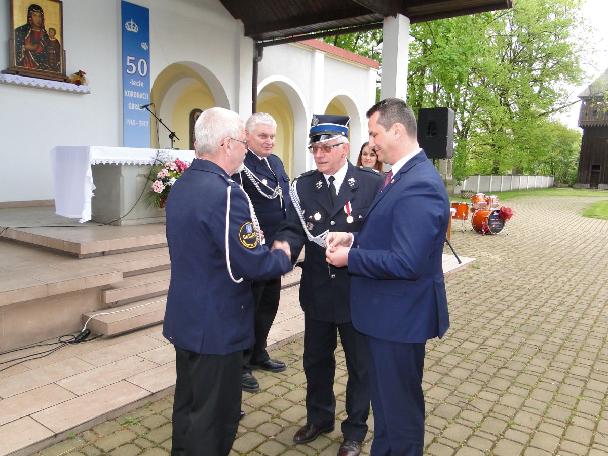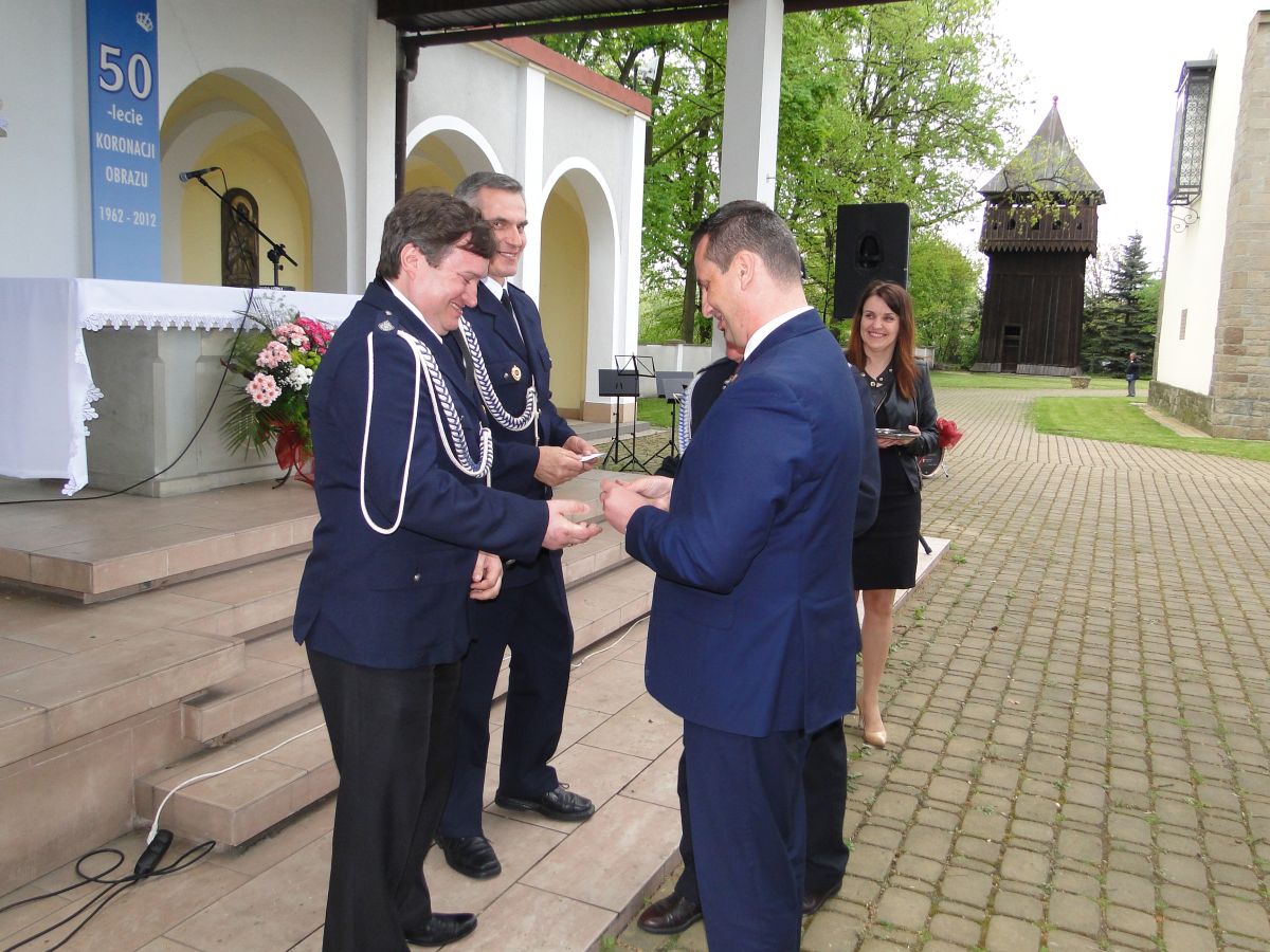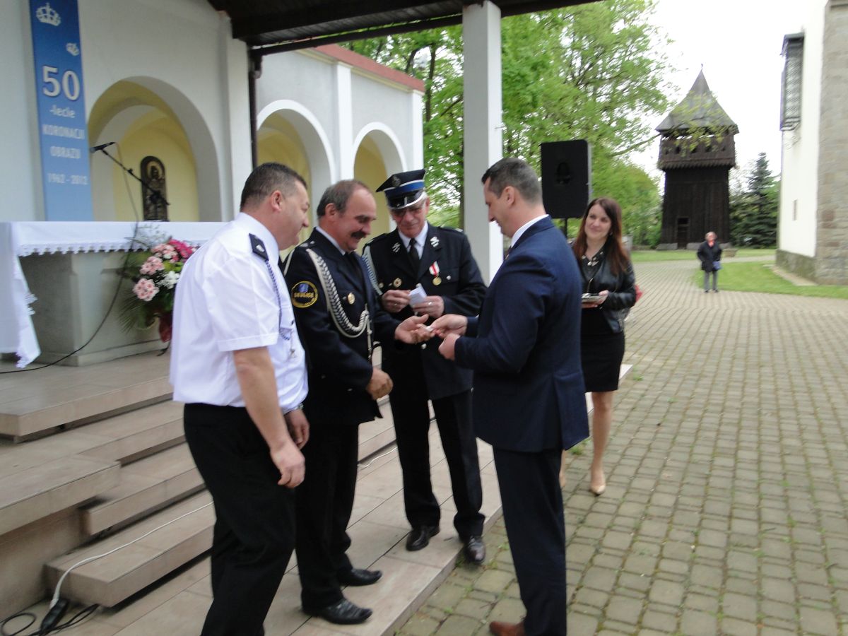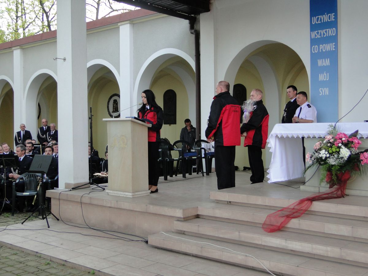 Jak na jubileusz przystało przyszedł także czas na życzenia i prezenty. Pan Wójt Mariusz Palej przekazał słowa uznania i gratulacje dla wszystkich osób tworzących orkiestrę na przestrzeni tych lat oraz podarował ufundowaną przez samorząd gminy wspaniałą perkusję. Kolejno gratulacje złożyli Starosta Bocheński Pan Ludwik Węgrzyn, kapelmistrzowie poszczególnych orkiestr, Dyrektor GCKCziS w Rzezawie oraz Zarząd Orkiestry z Krasocina. Życzenia złożyli również Dyrektor Miejskiego Centrum Kultury „Sokół” z Nowego Sącza Pan Antoni Malczak i Stanisław Migacz – główny specjalista do spraw orkiestr dętych. Następnie członkowie Orkiestry Dętej z Okulic przyjęli z rąk Prezesa Zarządu Oddziału Gminnego Związku OSP RO w Rzezawie Pana Krzysztofa Kołodzieja oraz Wójta Gminy Rzezawa Pana Mariusza Paleja odznaczenia za wysługę lat. Na zakończenie koncertu Prezes Orkiestry Dętej Okulie Pan Krzysztof Dziadowiec podziękował wszystkim za pomoc i zaangażowanie w przygotowaniu tej uroczystości jak również za pracę na przestrzeni tych lat poprzednim członkom orkiestry oraz kapelmistrzom.