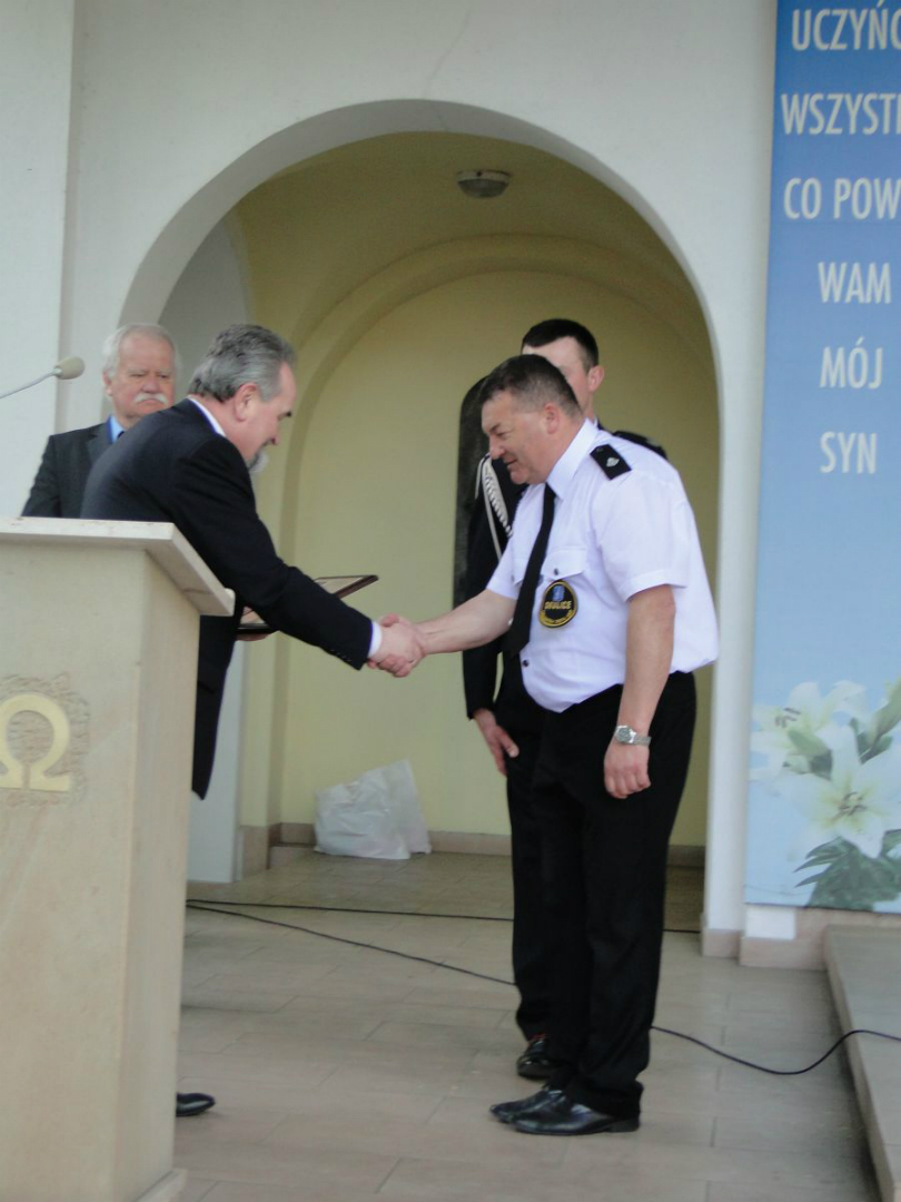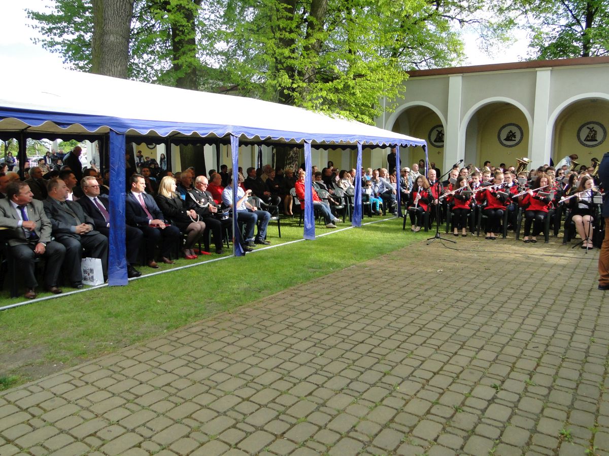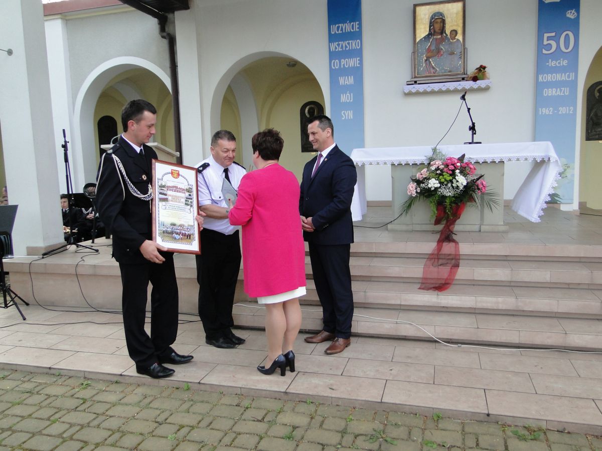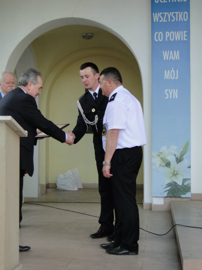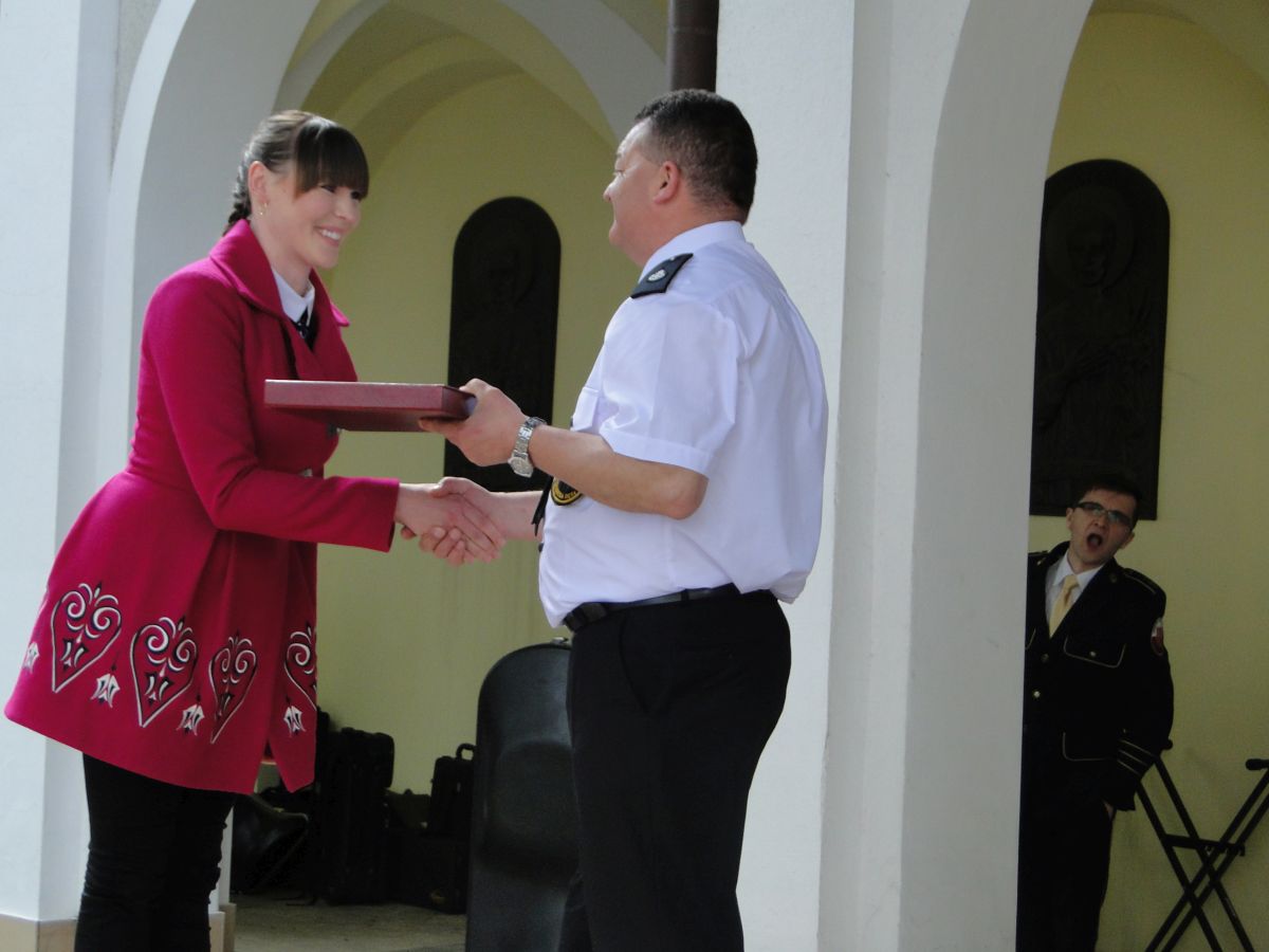 Jak na jubileusz przystało przyszedł także czas na życzenia i prezenty. Pan Wójt Mariusz Palej przekazał słowa uznania i gratulacje dla wszystkich osób tworzących orkiestrę na przestrzeni tych lat oraz podarował ufundowaną przez samorząd gminy wspaniałą perkusję. Kolejno gratulacje złożyli Starosta Bocheński Pan Ludwik Węgrzyn, kapelmistrzowie poszczególnych orkiestr, Dyrektor GCKCziS w Rzezawie oraz Zarząd Orkiestry z Krasocina. Życzenia złożyli również Dyrektor Miejskiego Centrum Kultury „Sokół” z Nowego Sącza Pan Antoni Malczak i Stanisław Migacz – główny specjalista do spraw orkiestr dętych. Następnie członkowie Orkiestry Dętej z Okulic przyjęli z rąk Prezesa Zarządu Oddziału Gminnego Związku OSP RO w Rzezawie Pana Krzysztofa Kołodzieja oraz Wójta Gminy Rzezawa Pana Mariusza Paleja odznaczenia za wysługę lat. Na zakończenie koncertu Prezes Orkiestry Dętej Okulie Pan Krzysztof Dziadowiec podziękował wszystkim za pomoc i zaangażowanie w przygotowaniu tej uroczystości jak również za pracę na przestrzeni tych lat poprzednim członkom orkiestry oraz kapelmistrzom.