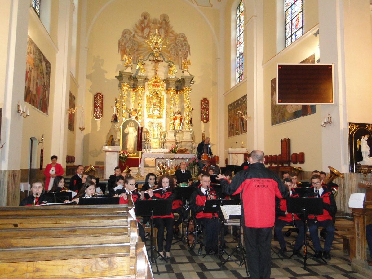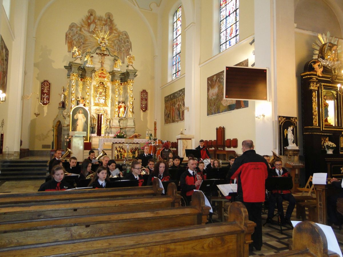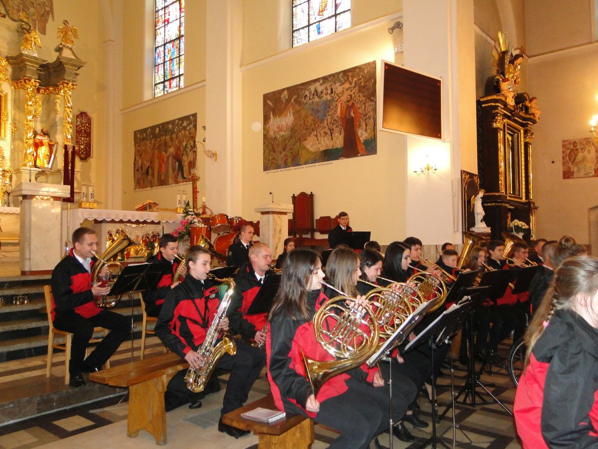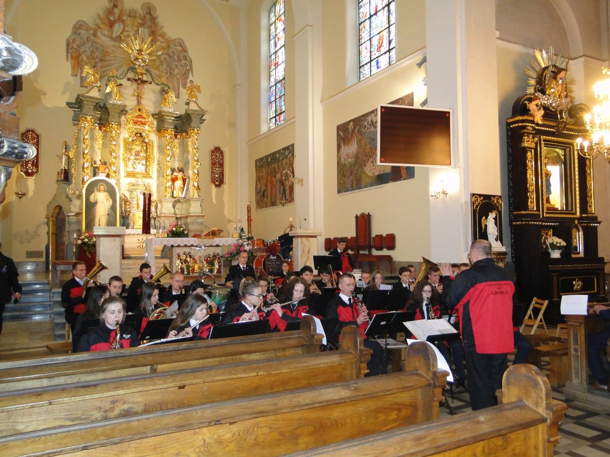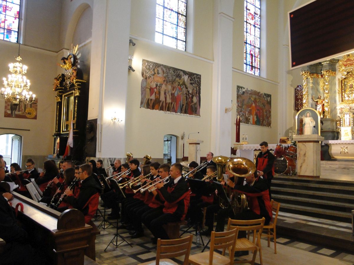 Kolejnym punktem jubileuszu była uroczysta Msza Święta w intencji żyjących i zmarłych członków Orkiestry Dętej oraz ich rodzin, która została odprawiona pod przewodnictwem księdza proboszcza Romana Majocha oraz księdza Józefa Piwowarskiego - długoletniego proboszcza parafii w Austrii, skąd przybyła Orkiestra „Die Kremnitztaler”.