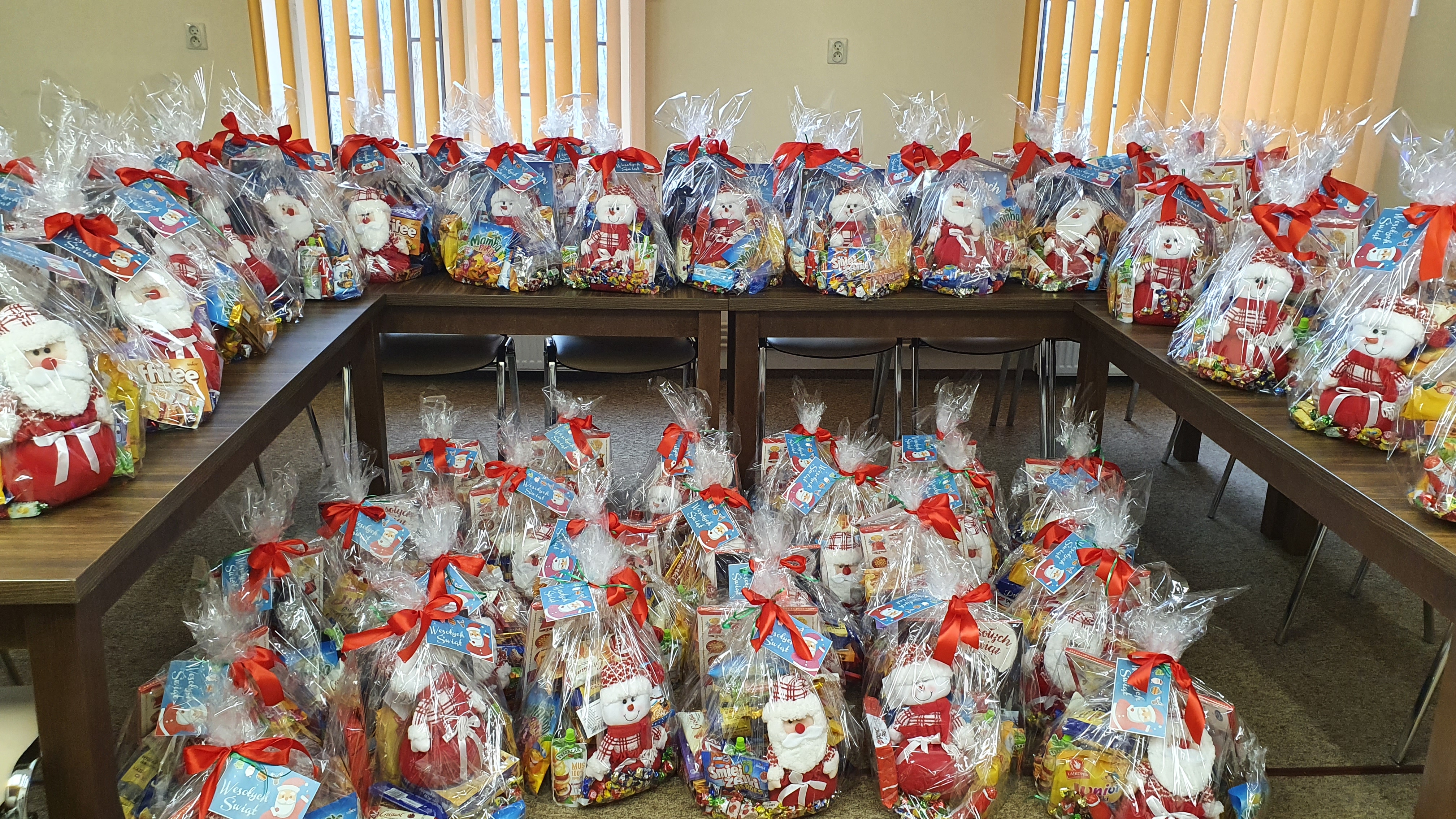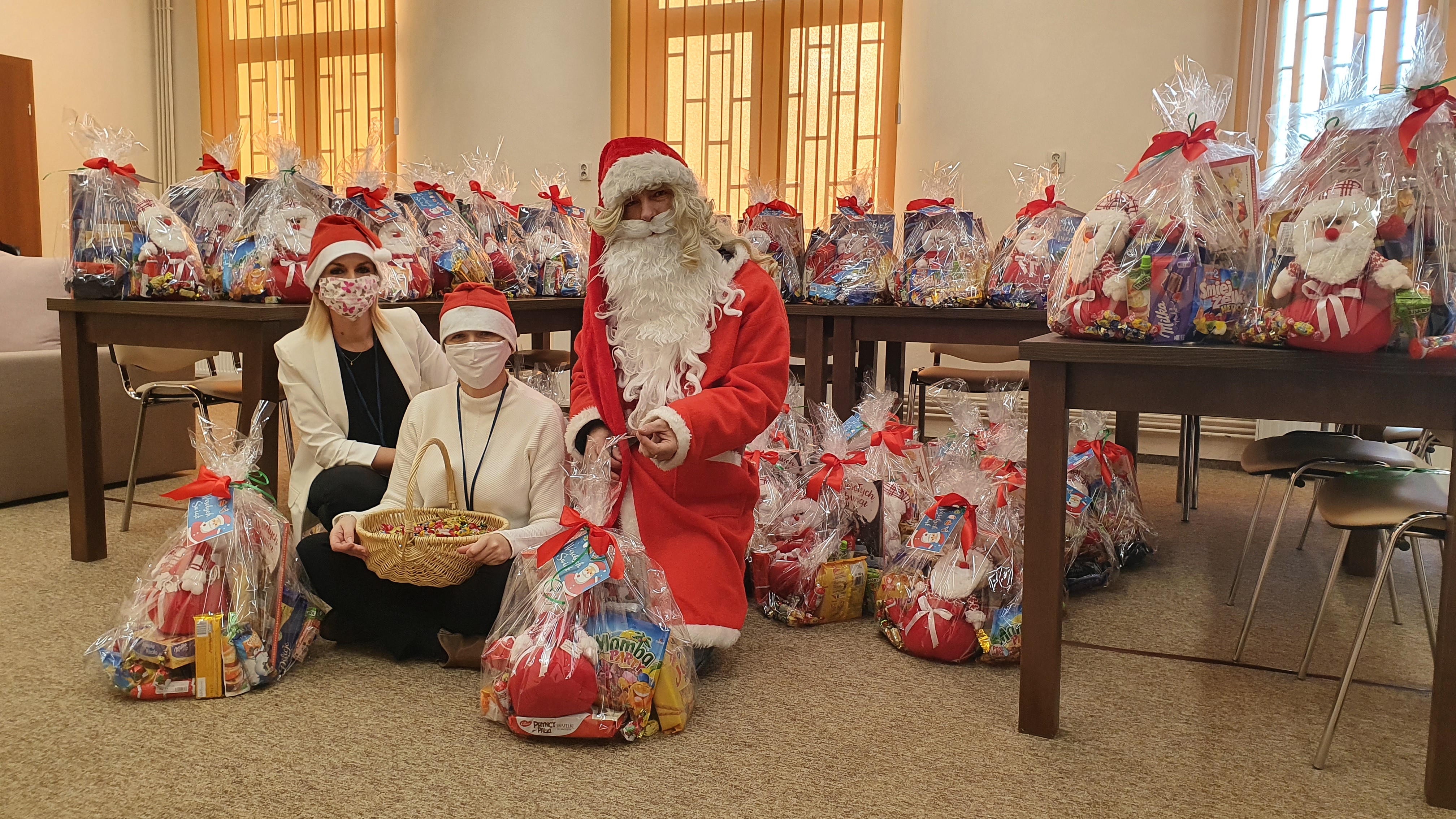Przygotowane przez pracowników socjalnych paczki mikołajkowe osobiście dostarczy w miejsce zamieszkania dzieci Święty Mikołaj z zachowaniem reżimu sanitarnego w związku z panującą pandemią Sars CoV-2.