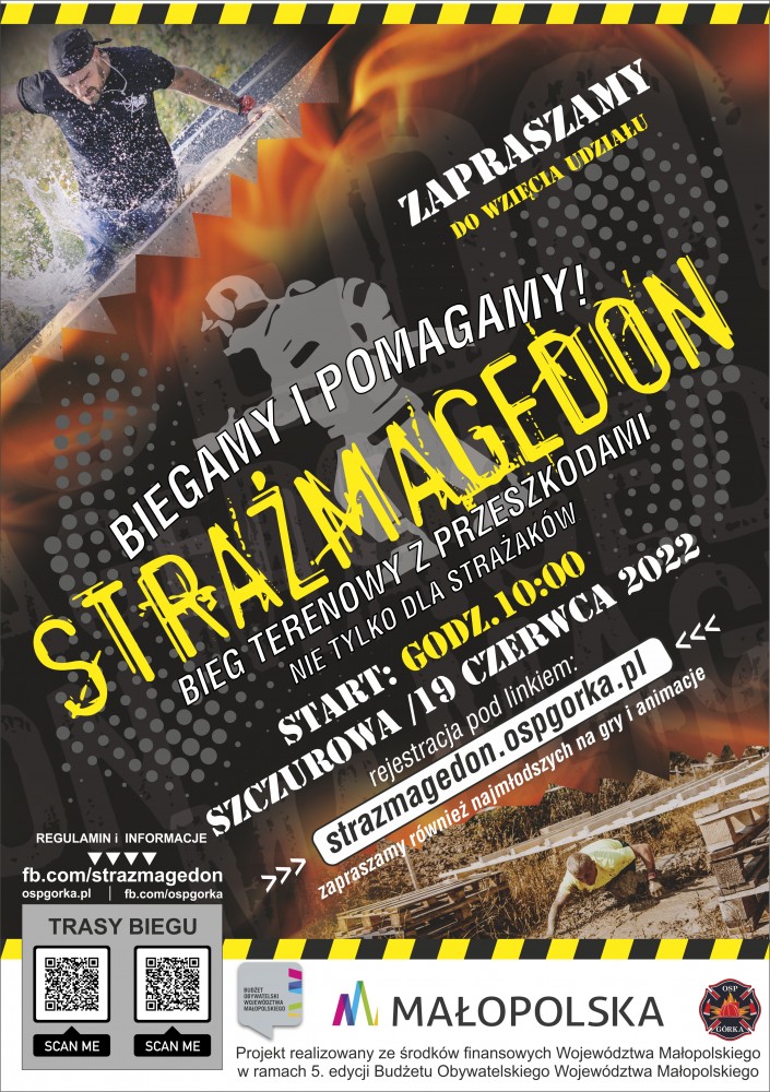 STRAŻMAGEDON to projekt, którego celem jest nie tylko promocja aktywności fizycznej, integracja mieszkańców poszczególnych miejscowości i regionu, wsparcie działalności strażackiej, ale przede wszystkim propagowanie działalności charytatywnej.