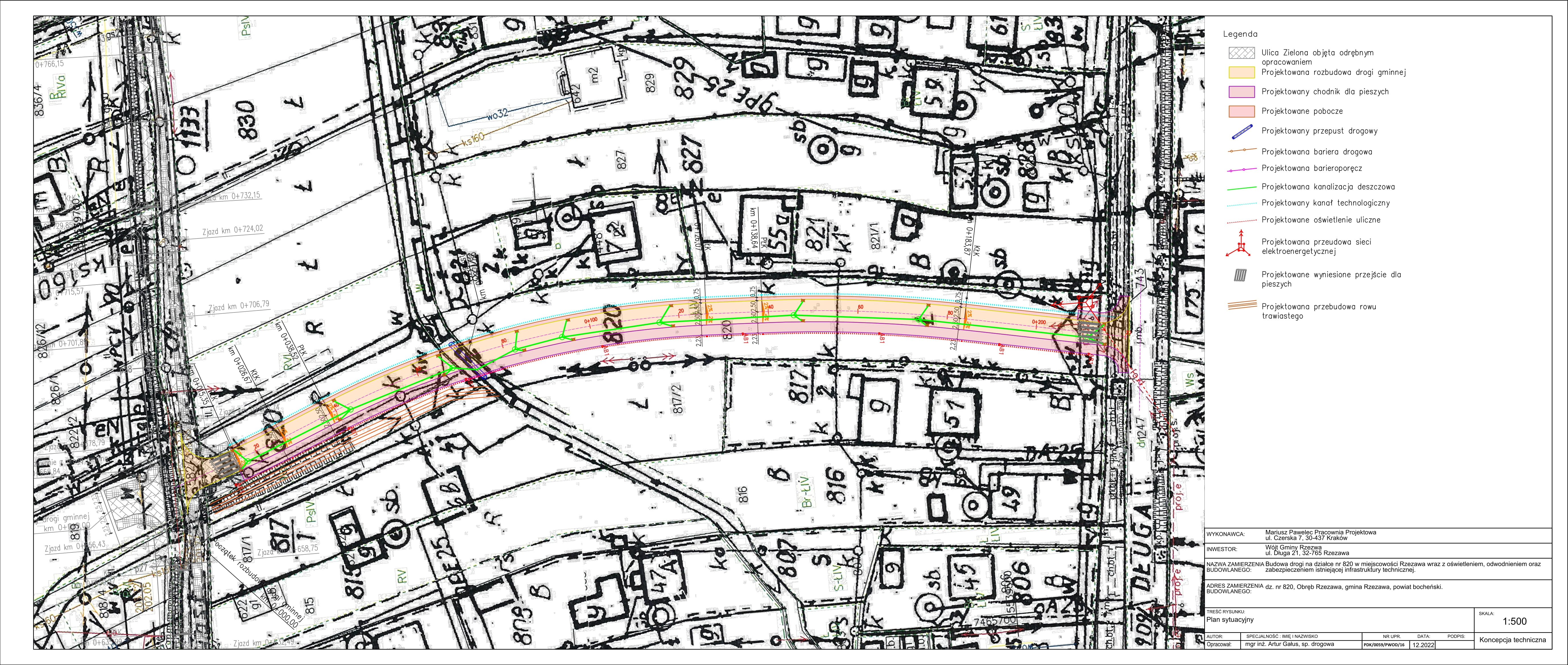 Projektowana droga powstanie na działce nr 820 i będzie miała ponad 220 metrów długości oraz 5 metrów szerokości. Wzdłuż niej zostanie wybudowany chodnik o szerokości 2 metrów. Droga będzie oświetlona. Pojawią się na niej także wyniesione przejścia dla pieszych. Inwestycja zakłada ponadto m.in. budowę kanalizacji opadowej oraz kanału technologicznego.