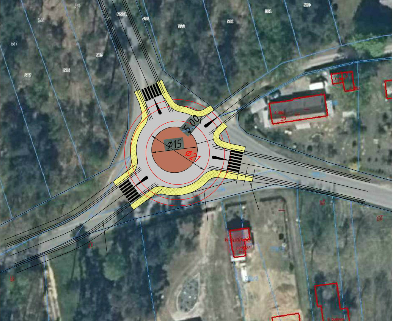 Inwestycja na styku Jodłówki i Jasienia oprócz budowy skrzyżowania o ruchu okrężnym zakłada także stworzenie chodnika dla pieszych.