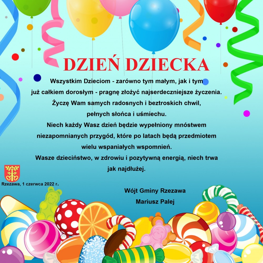 Wszystkim Dzieciom - zarówno tym małym, jak i tym już całkiem dorosłym - pragnę złożyć najserdeczniejsze życzenia. Życzę Wam samych radosnych i beztroskich chwil, pełnych słońca i uśmiechu.mNiech każdy Wasz dzień będzie wypełniony mnóstwem niezapomnianych przygód, które po latach będą przedmiotem wielu wspaniałych wspomnień. Wasze dzieciństwo, w zdrowiu i pozytywną energią, niech trwa jak najdłużej.