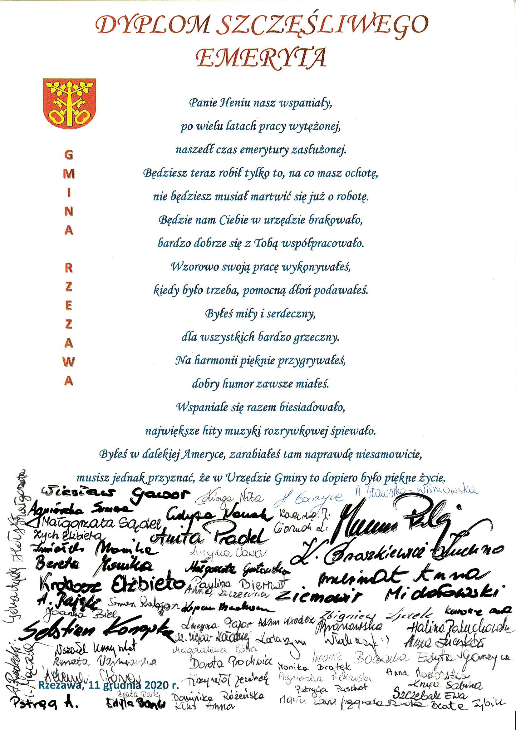 Henryk Hołota po wielu latach pracy, z których aż 23 przepracował w Urzędzie Gminy Rzezawa, przechodzi na zasłużoną emeryturę.