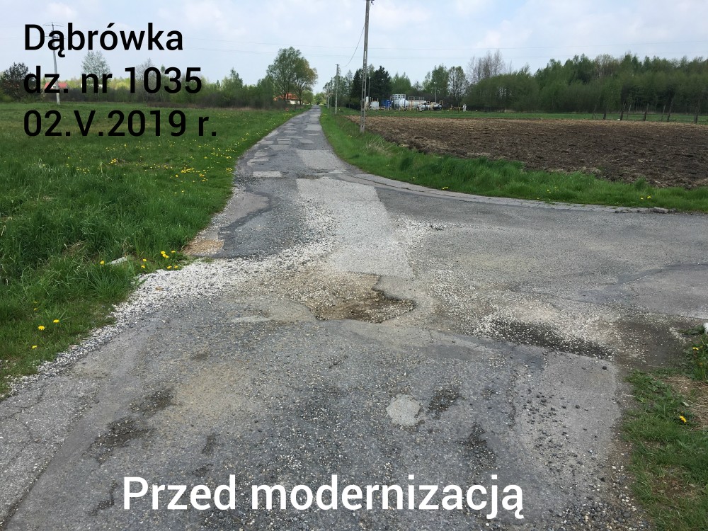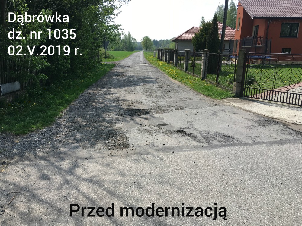 Niedawno zakończył się remont drogi gminnej stanowiącej działkę nr 1035 znajdującej się w centrum Dąbrówki o długości 580 m. Droga przed remontem posiadała bardzo dużo ubytków. Teraz zyskała nową nawierzchnię asfaltową, która znacznie poprawiła komfort wszystkich jej użytkowników.