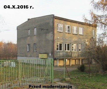 (Zakres prac: Wymiana stolarki okiennej i drzwiowej zewnętrznej, Docieplenie fundamentów, ścian, stropów, Modernizacja kotłowni wraz z wymianą kotła gazowego)