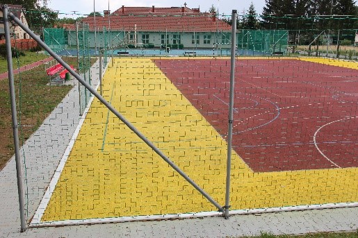 (Zakres prac: Boisko wielofunkcyjne z nawierzchnią poliuretanową 30 x 44 m, Kort tenisowy 18,29*36,57 m.,