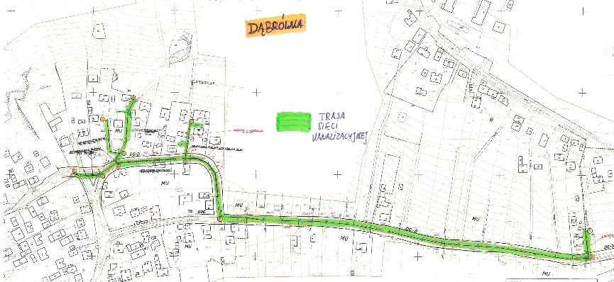 - Budowa sieci kanalizacji sanitarnej z przyłączami w Dąbrówce: