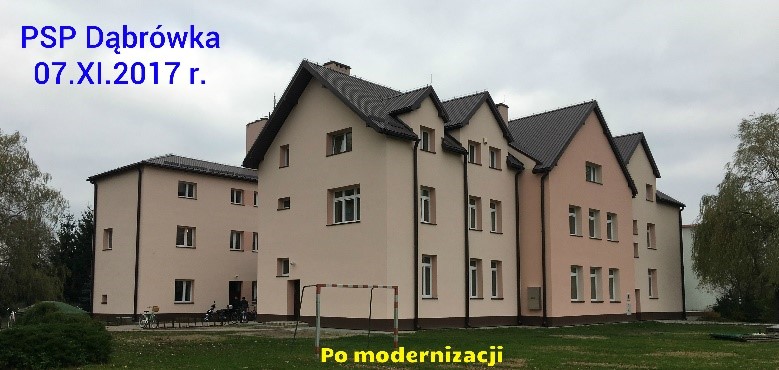- Termomodernizacja oraz wymiana pokrycia dachu budynku Zespołu Szkół w Dąbrówce