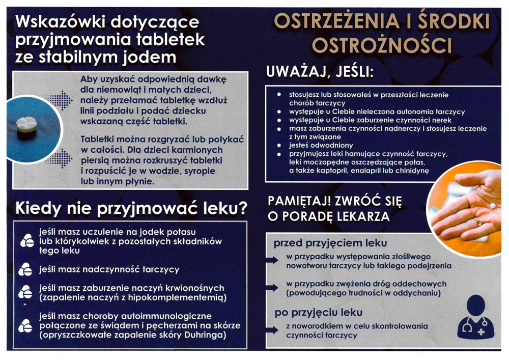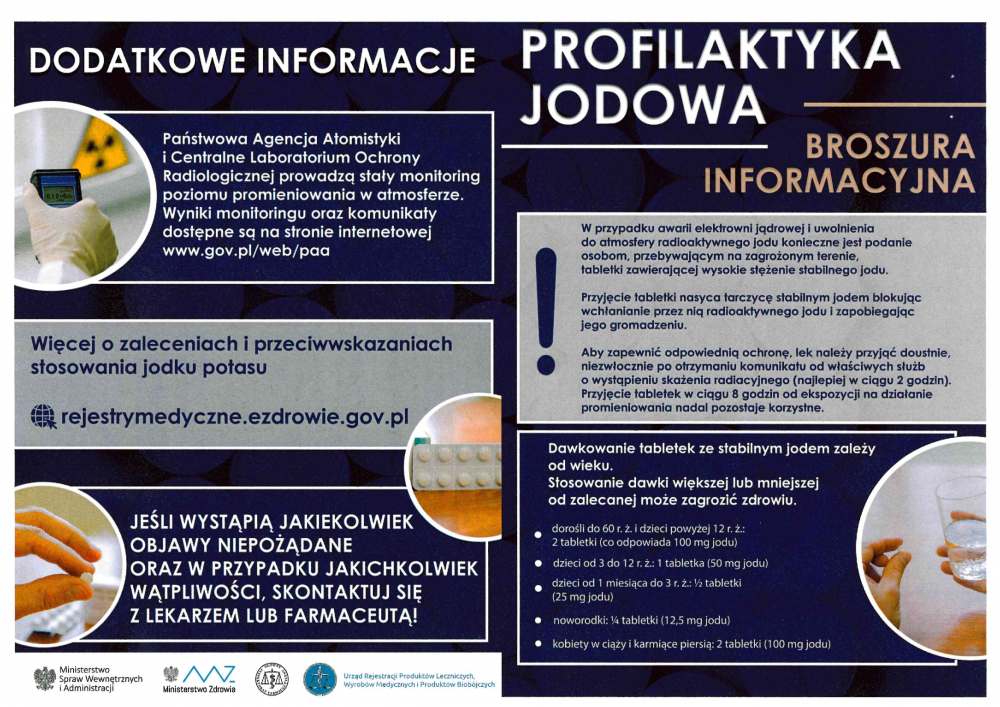 W załączeniu ulotki informacyjne dotyczące profilaktyki jodowej.