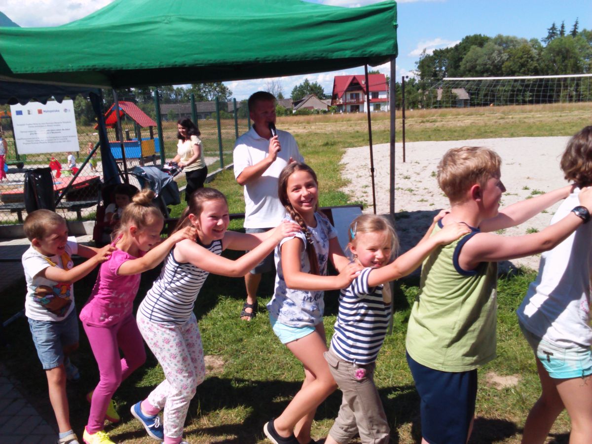 Podczas imprezy odbyły się gry i zabawy z wodzirejem, konkursy z nagrodami oraz występy artystyczne dzieci. Temu wszystkiemu towarzyszył pyszny poczęstunek na ciepło w postaci grilla oraz coś na słodko. Dzieci mogły bez ograniczeń skorzystać z waty cukrowej, popcornu oraz dmuchanej zjeżdżalni.
