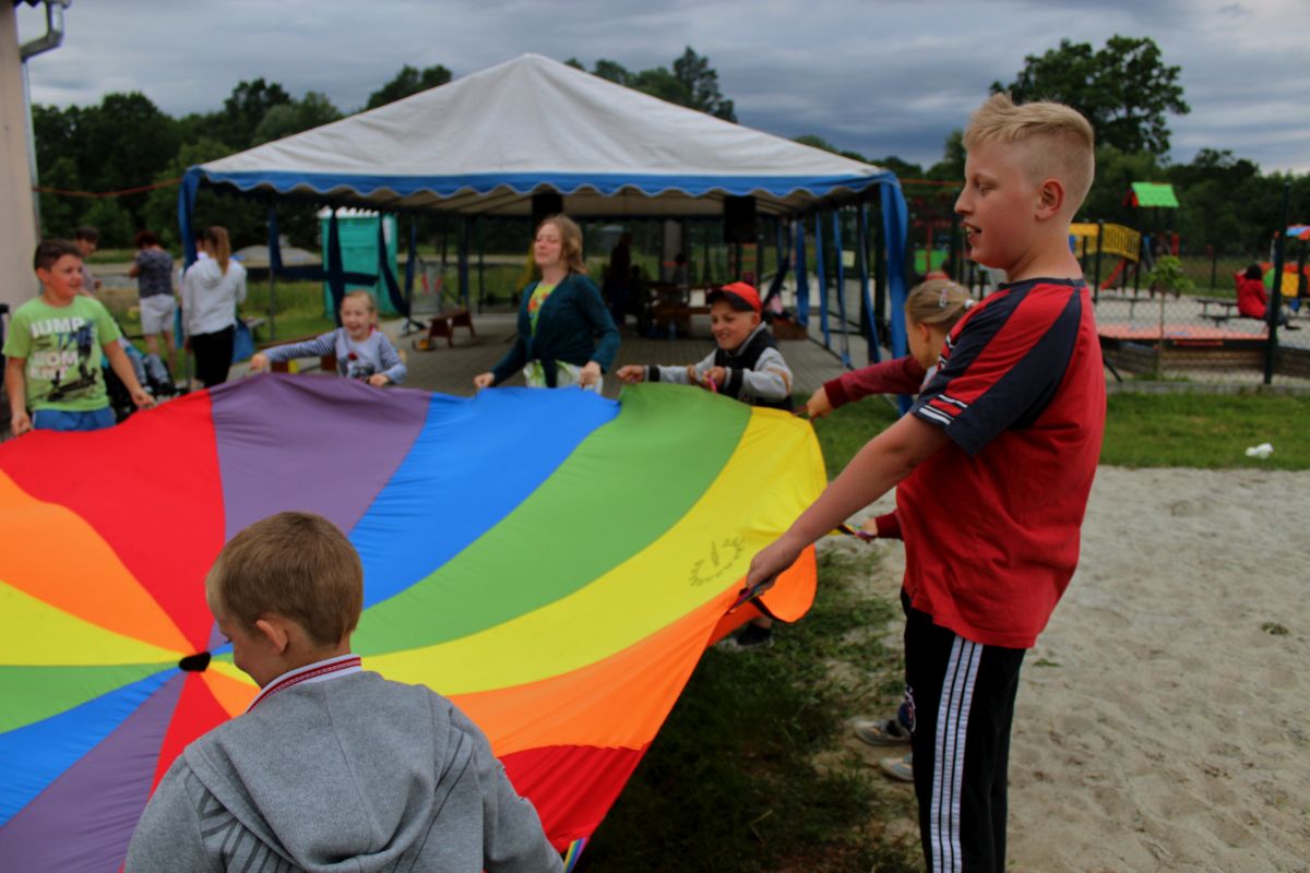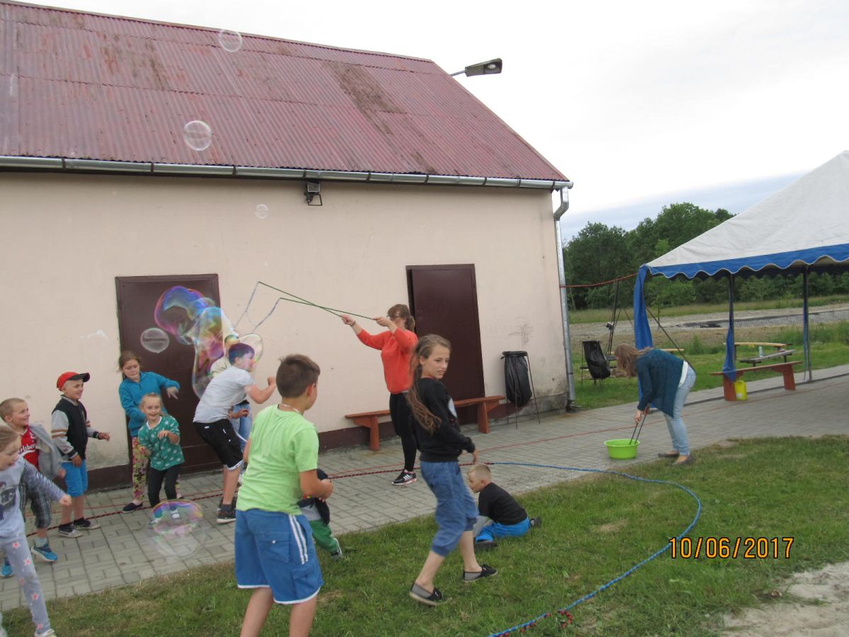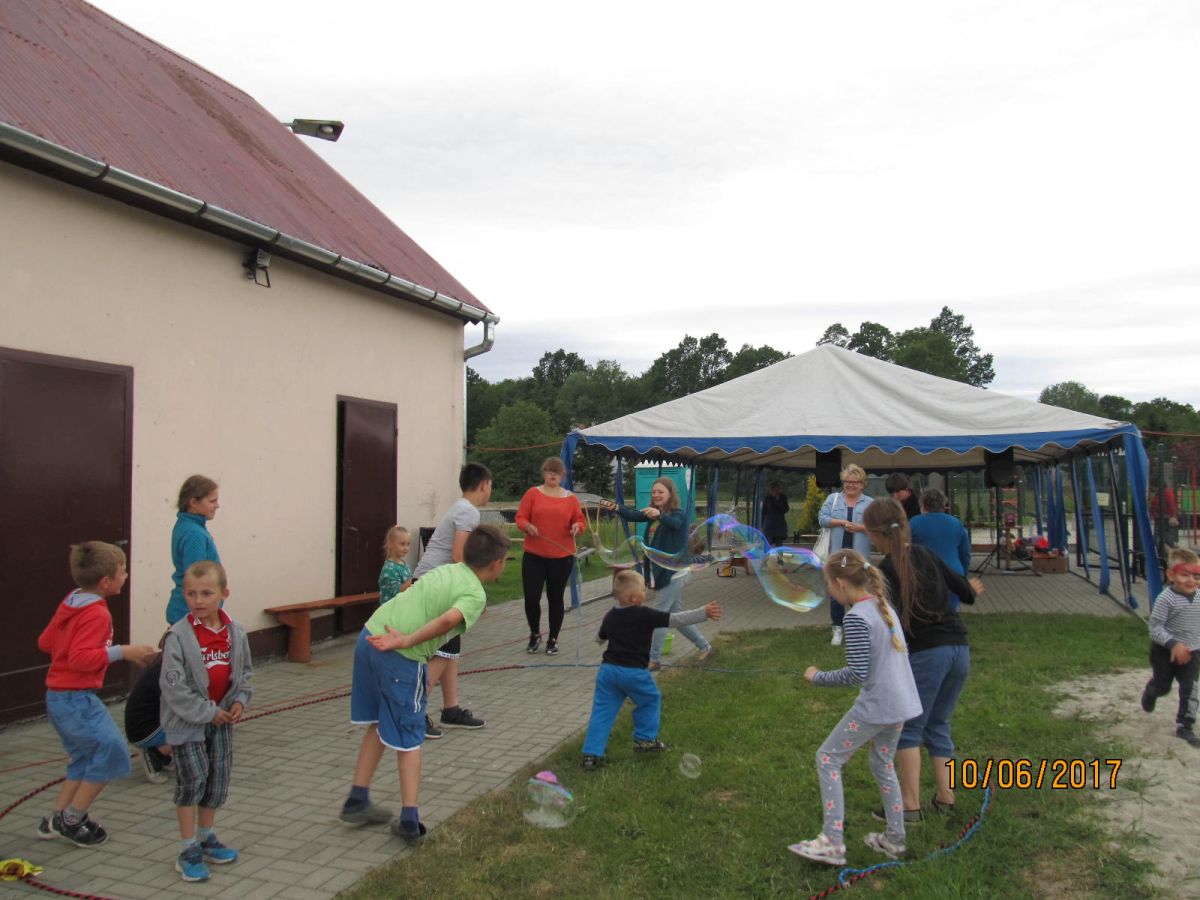 Wszyscy zgromadzeni mieli możliwość skorzystania z wielu atrakcji, takich jak: gry i zabawy z animatorami, malowanie twarzy, zabawy z chustą animacyjną, malowanie na folii, puszczanie „gigantycznych baniek”, zabawa na dmuchanym zamku.