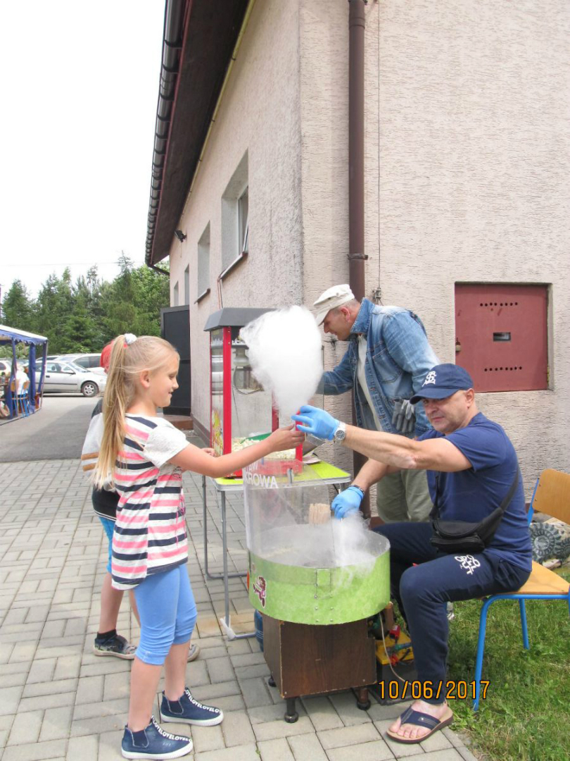 Zabawom towarzyszył poczęstunek w postaci gorących kiełbasek, ciast, napojów, waty cukrowej oraz popcornu.