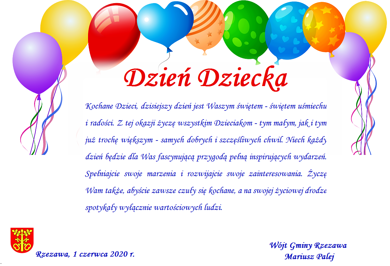 Kochane Dzieci, dzisiejszy dzień jest Waszym świętem - świętem uśmiechu i radości. Z tej okazji życzę wszystkim Dzieciakom - tym małym, jak i tym już trochę większym - samych dobrych i szczęśliwych chwil. Niech każdy dzień będzie dla Was fascynującą przygodą pełną inspirujących wydarzeń. Spełniajcie swoje marzenia i rozwijajcie swoje zainteresowania. Życzę Wam także, abyście zawsze czuły się kochane, a na swojej życiowej drodze spotykały wyłącznie wartościowych ludzi.