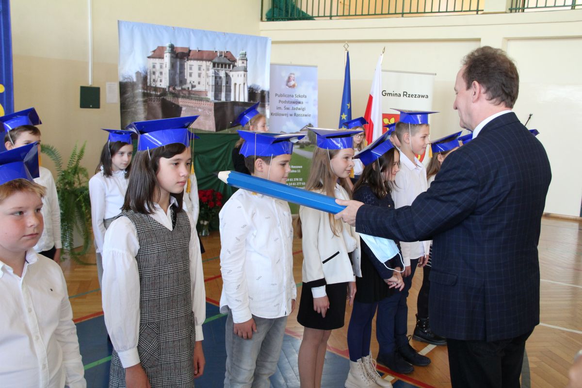 Tegoroczne uroczystości związane z Dniem Edukacji Narodowej rozpoczęły się apelem w Publicznej Szkole Podstawowej im. Świętej Jadwigi Królowej w Rzezawie. Były piękne występy artystyczne, podczas których uczniowie wystawili sztukę o patronce szkoły, a także zaprezentowali swoje talenty wokalne. Był także polonez oraz uroczyste ślubowanie, po którym czwartoklasiści zostali pasowani przez Wiceministra Włodzimierza Bernackiego na „Żaków”.