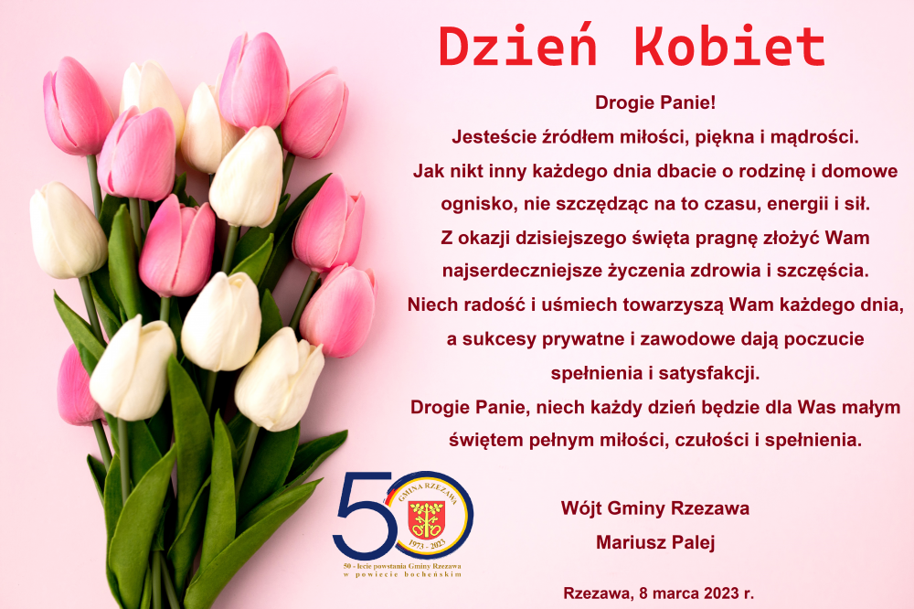 Jesteście źródłem miłości, piękna i mądrości. Jak nikt inny każdego dnia dbacie o rodzinę i domowe ognisko, nie szczędząc na to czasu, energii i sił. Z okazji dzisiejszego święta pragnę złożyć Wam najserdeczniejsze życzenia zdrowia i szczęścia. Niech radość i uśmiech towarzyszą Wam każdego dnia, a sukcesy prywatne i zawodowe dają poczucie spełnienia i satysfakcji. Drogie Panie, niech każdy dzień będzie dla Was małym świętem pełnym miłości, czułości i spełnienia.