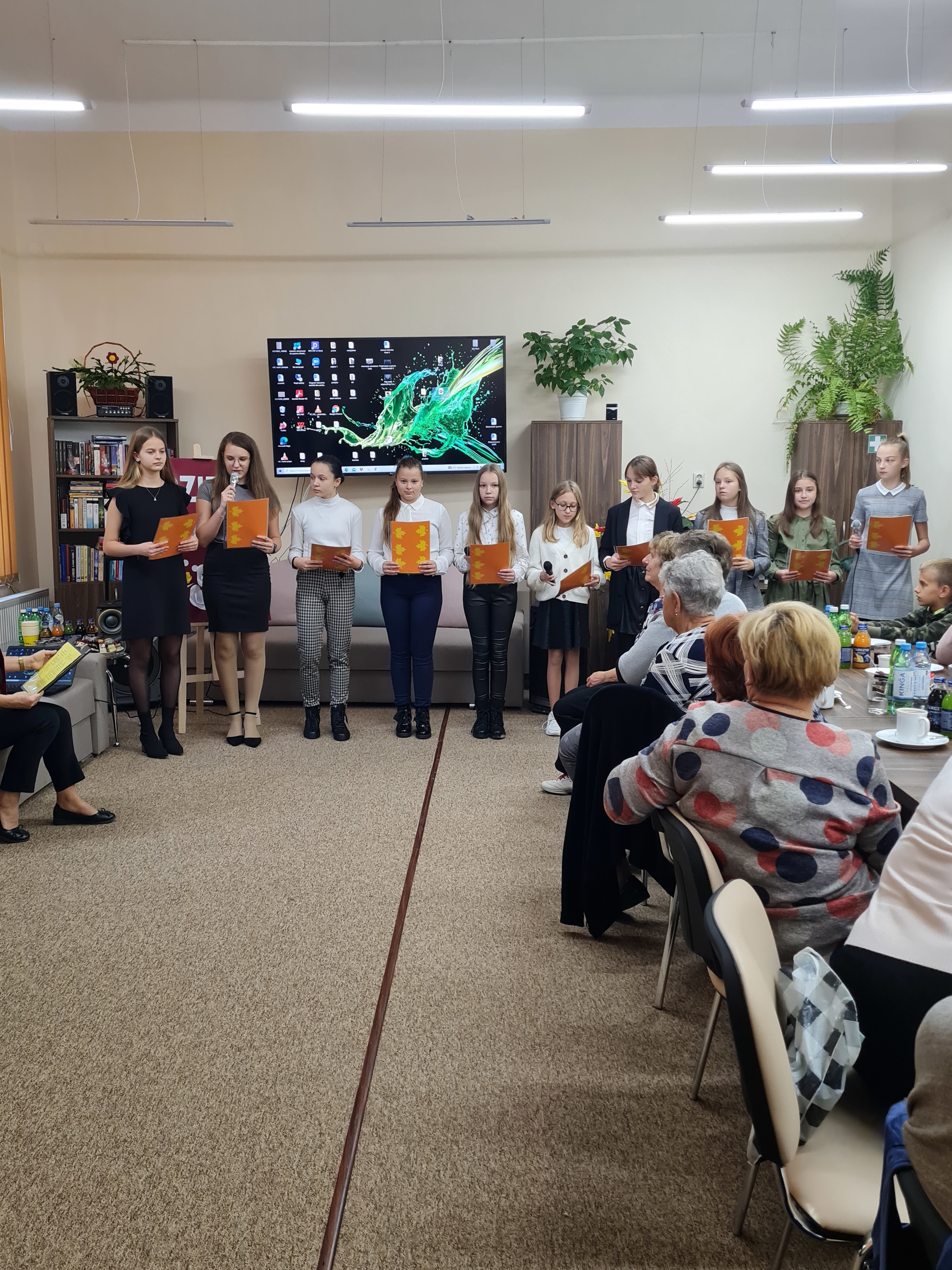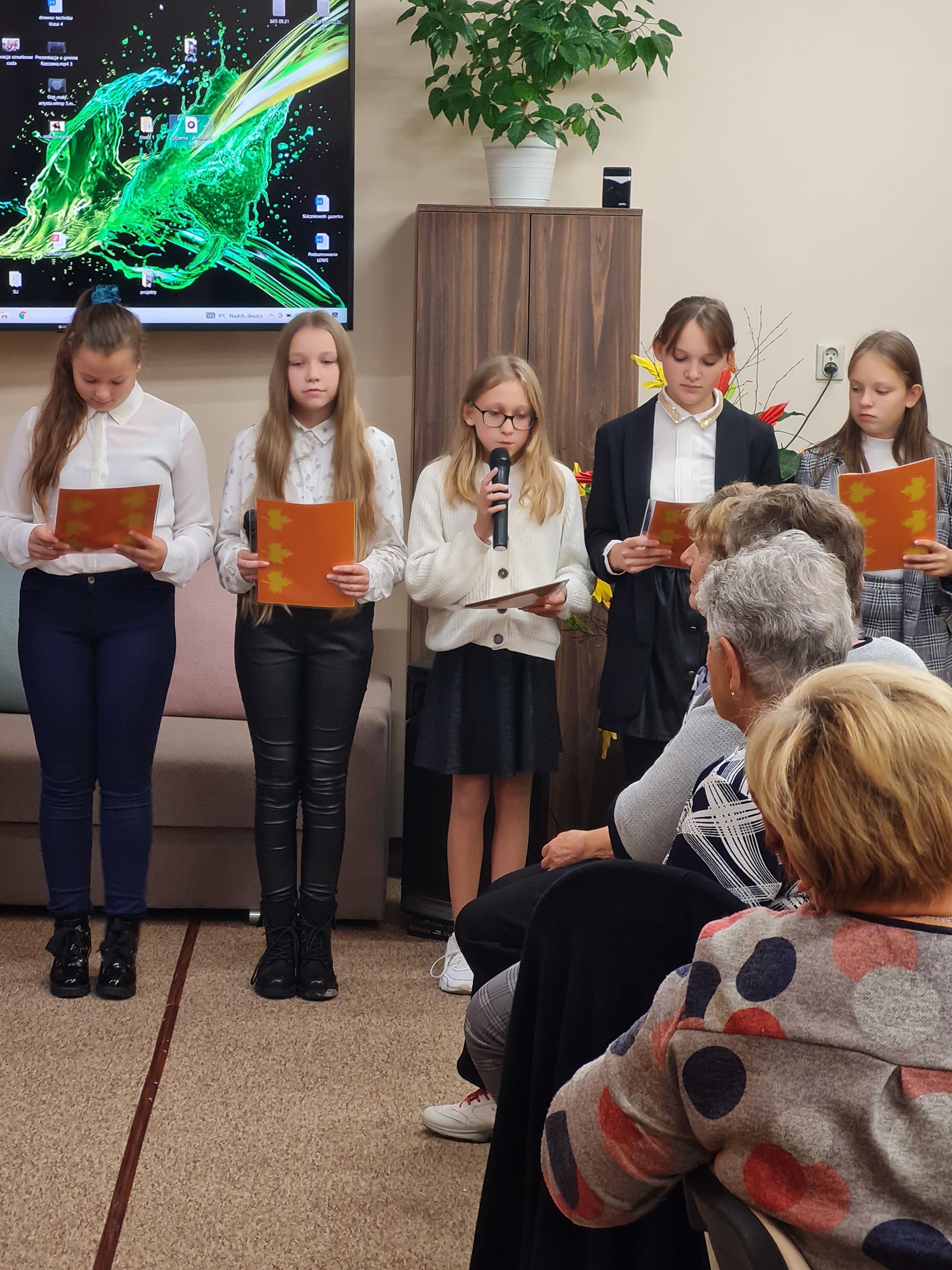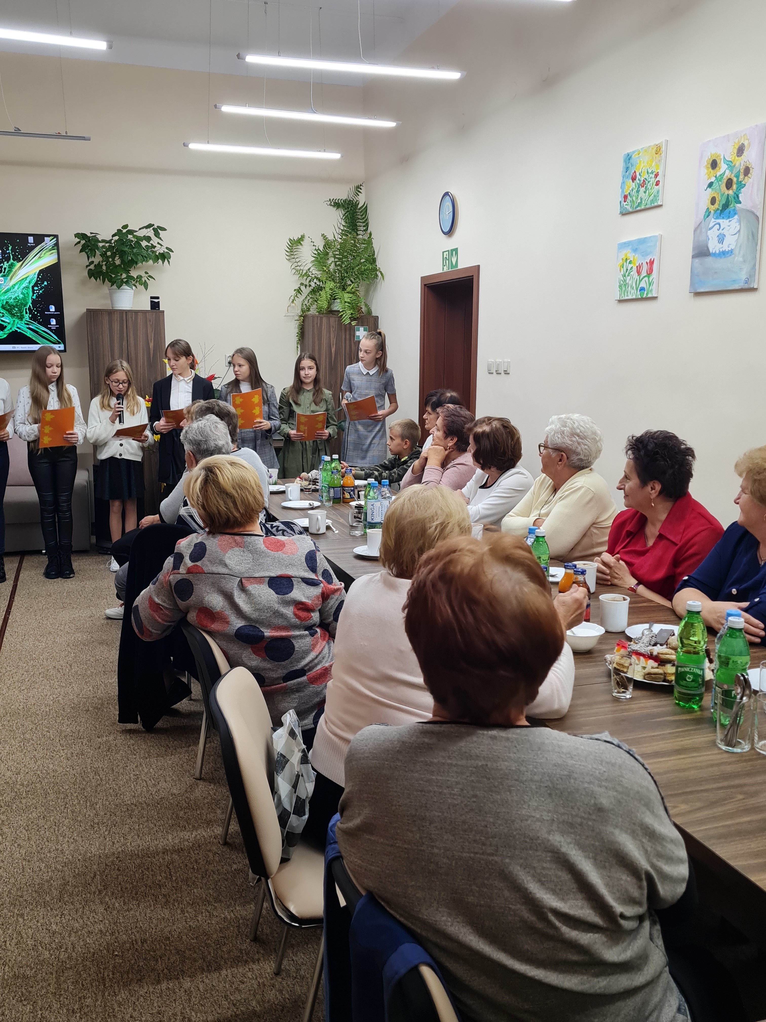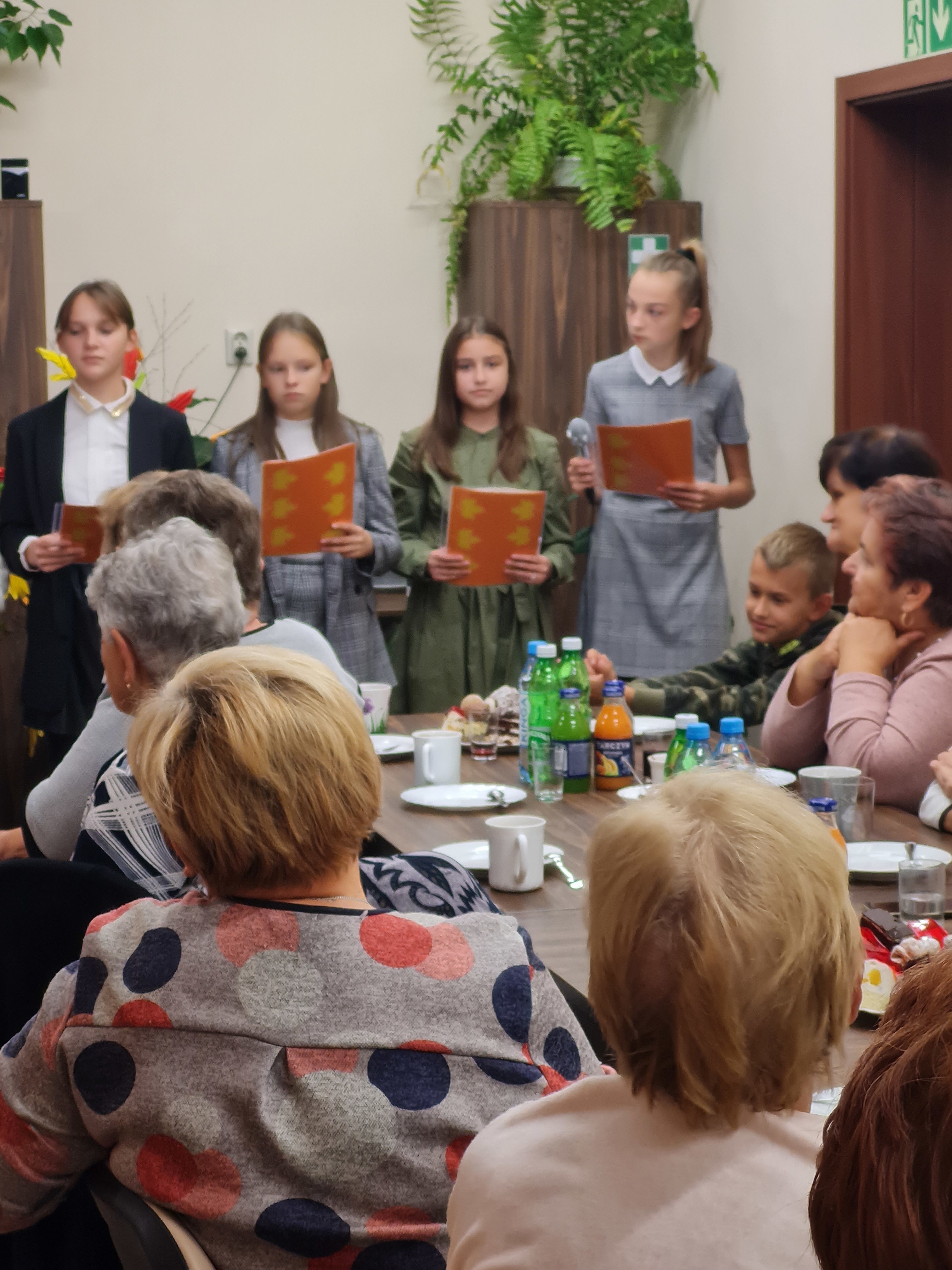 Na program składały się wiersze i piosenki oraz prezentacja multimedialna, która pozwoliła wrócić do wspomnień z dawnych lat. Seniorzy otrzymali także prezenty wykonane przez dzieci, z którymi miło spędzili czas przy kawie, herbatce i pysznym cieście.