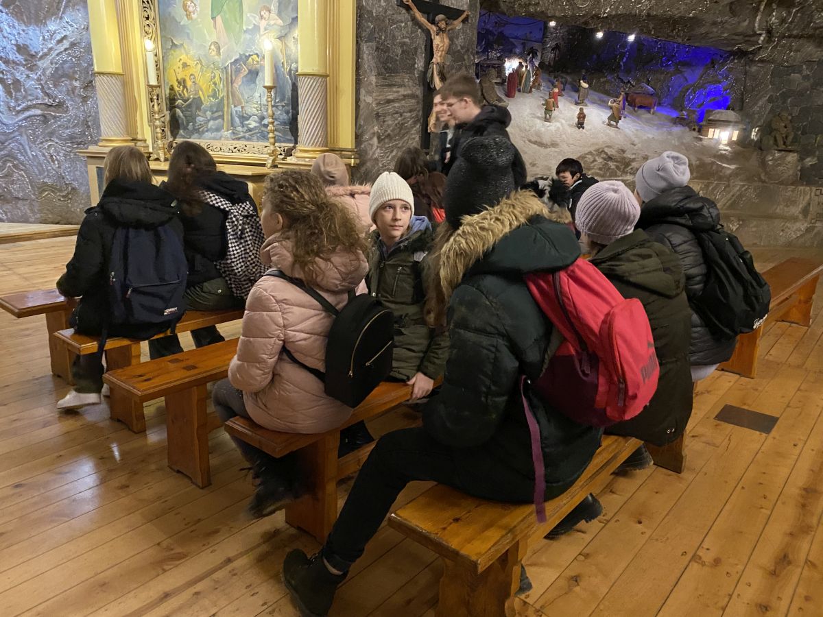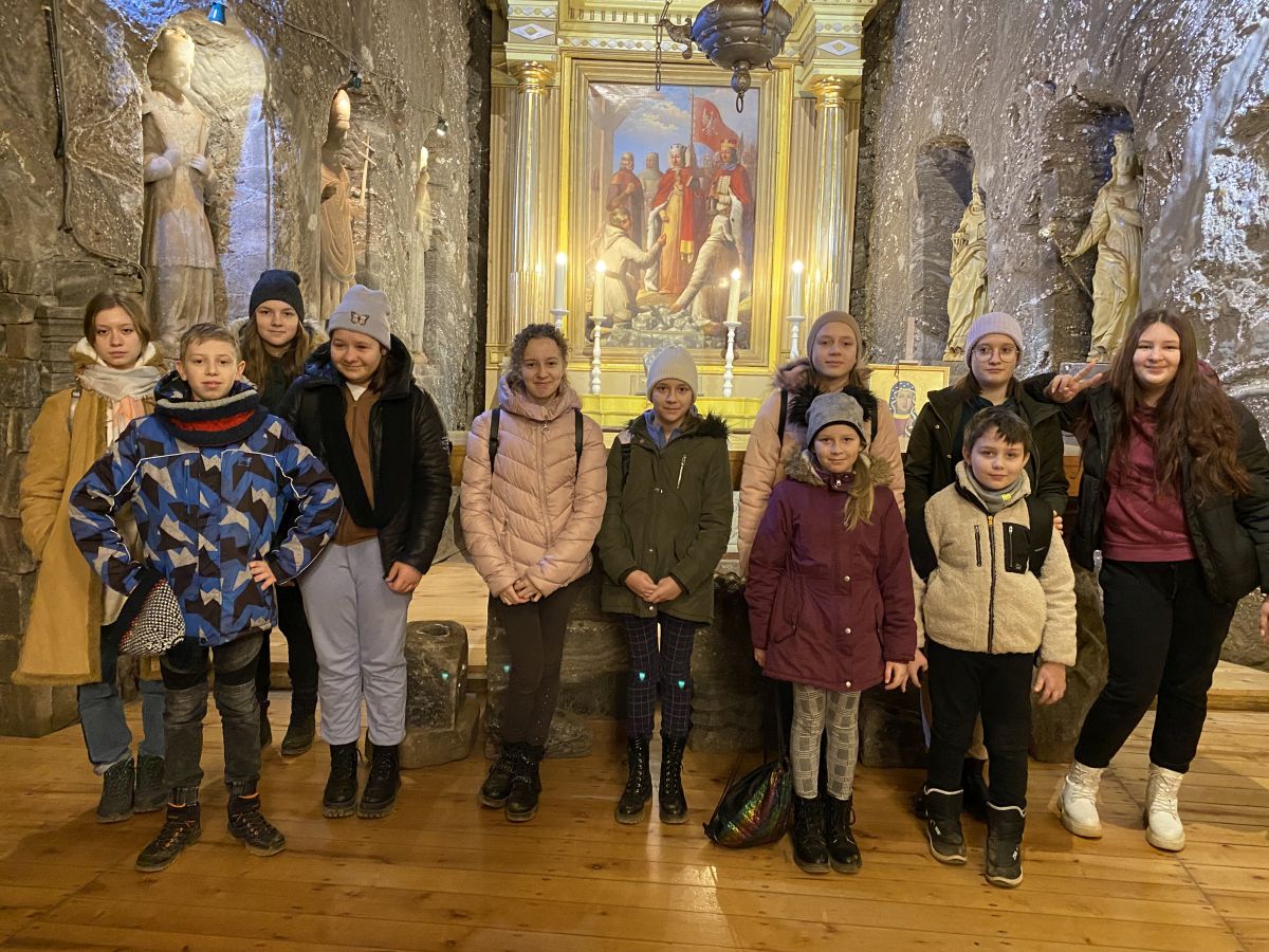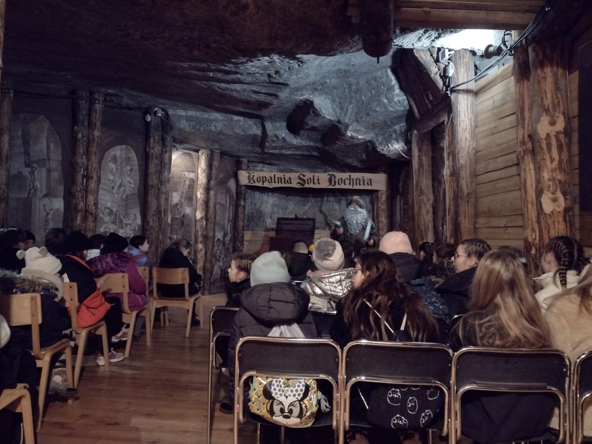 Wycieczka do Kopalni Soli w Bochni. W tym dniu dzieci i młodzież przeżyły niezwykłą przygodę spędzając sześć niezapomnianych godzin w Królestwie Skarbnika, czyli w Kopalni Soli w Bochni. Jedną z wielu atrakcji jaką przeżyli uczestnicy ferii była przeprawa łodzią przez zalaną solanką komorę, w towarzystwie dwóch flisaków, z których to jeden w barwny sposób opowiadał o tajemniczych zakamarkach bocheńskiej kopalni. Piękno solnej komory i niezwykły bajkowy nastrój w niej panujący spowodowały, że ten dzień pozostanie na długo w pamięci.