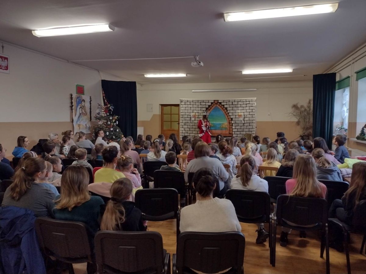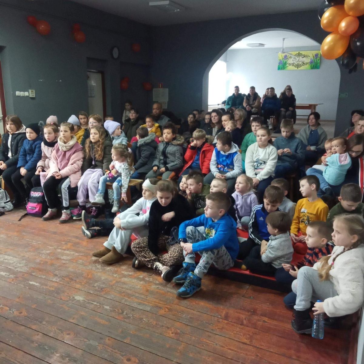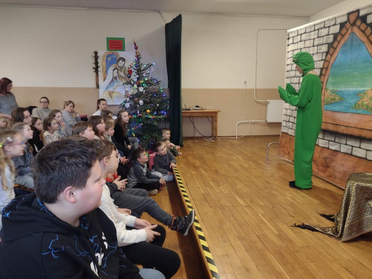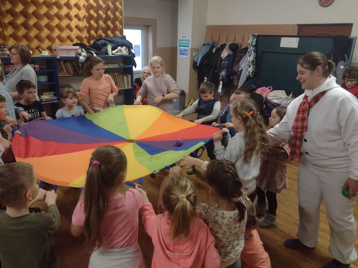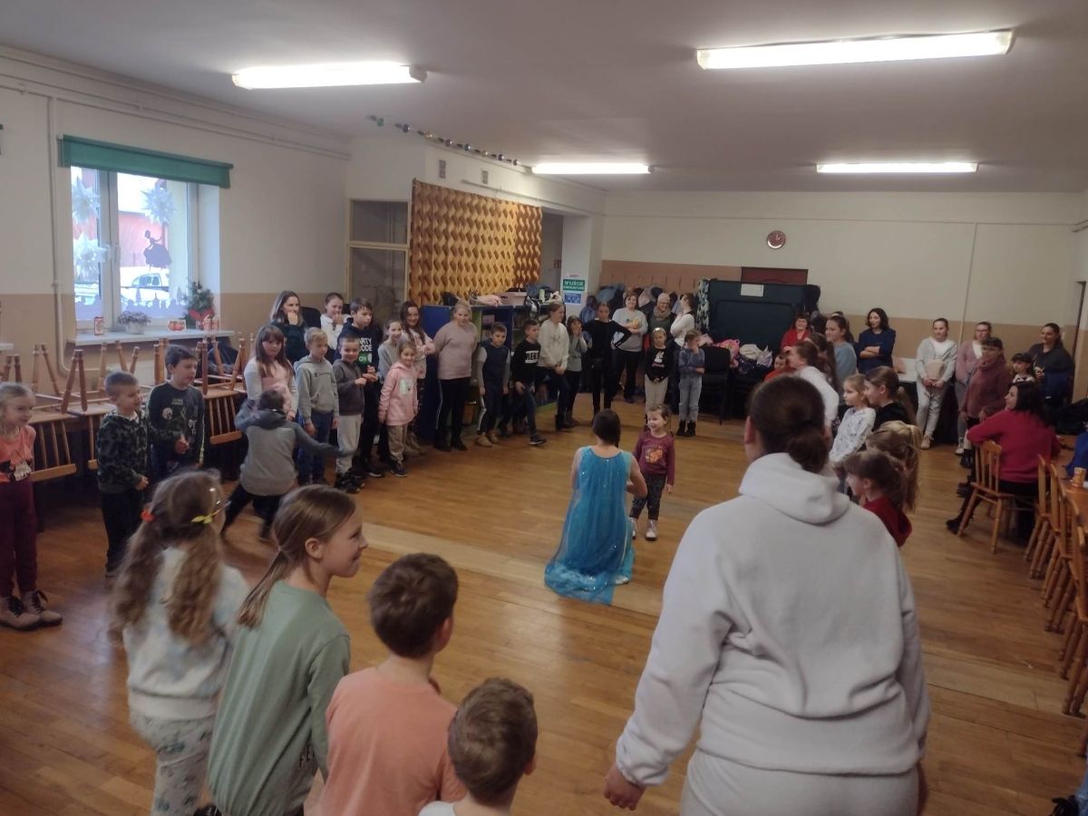 Kolejnego dnia ferii w naszej gminie gościł Teatr Edukacji i Profilaktyki „MASKA” z bajką profilaktyczno- edukacyjną, pt. ,,Złośliwości jej Królewskiej Mości”. Przedstawienie opowiadało o zasadach dobrego wychowania. Dzieci bardzo zaangażowały się w losy księżniczki, podpowiadały bohaterce, co ma robić i jak ma się zachowywać w określonych sytuacjach, aby stać się lepszą osobą. Po spektaklu dzieci wzięły udział w zabawach animacyjnych „ Kraina śniegu zabawy z Elizą i bałwankiem” prowadzonych przez aktorów teatru ,,MASKA’’.