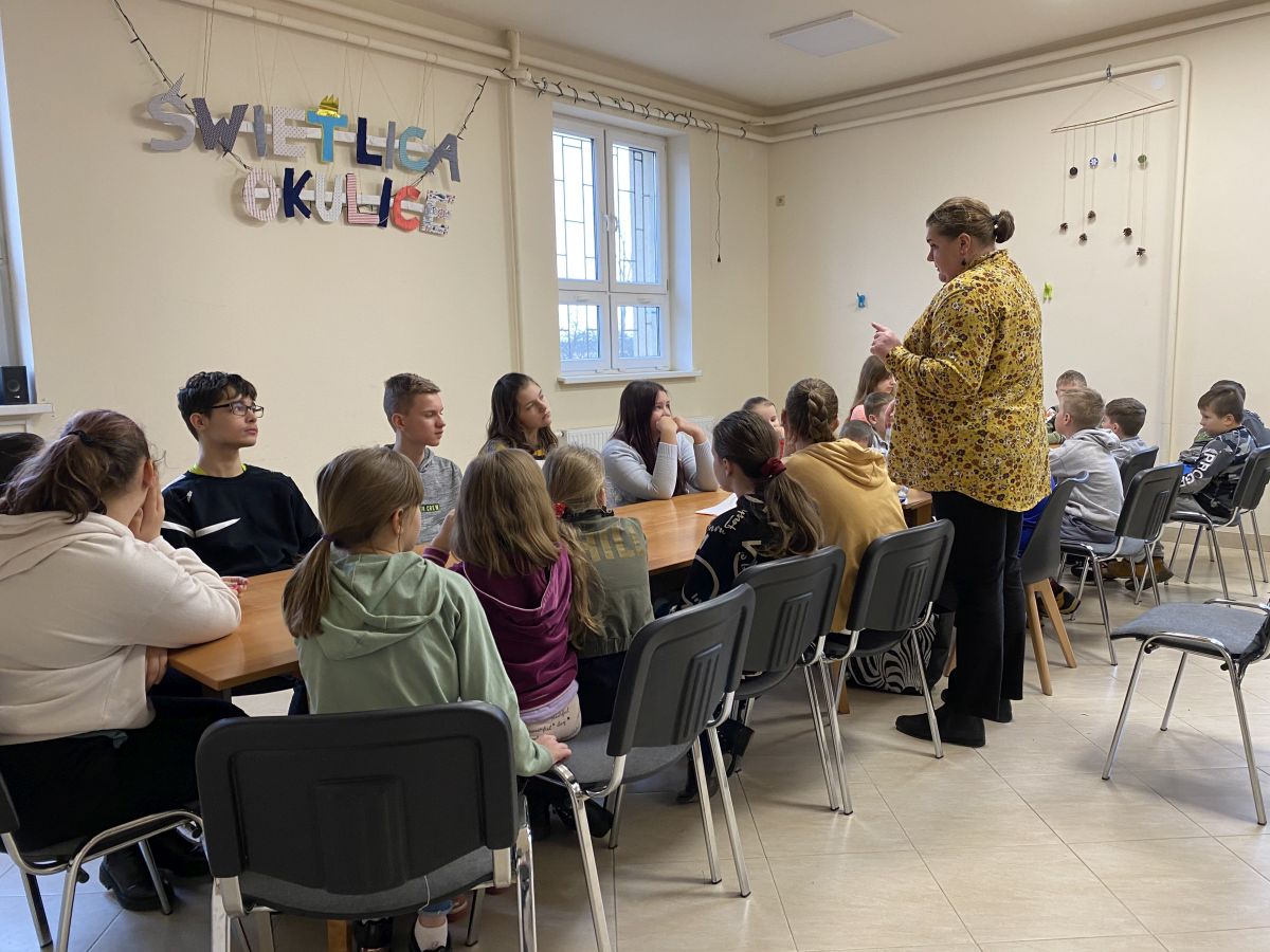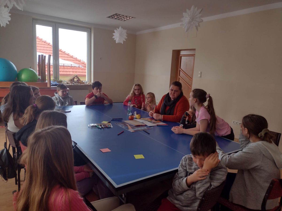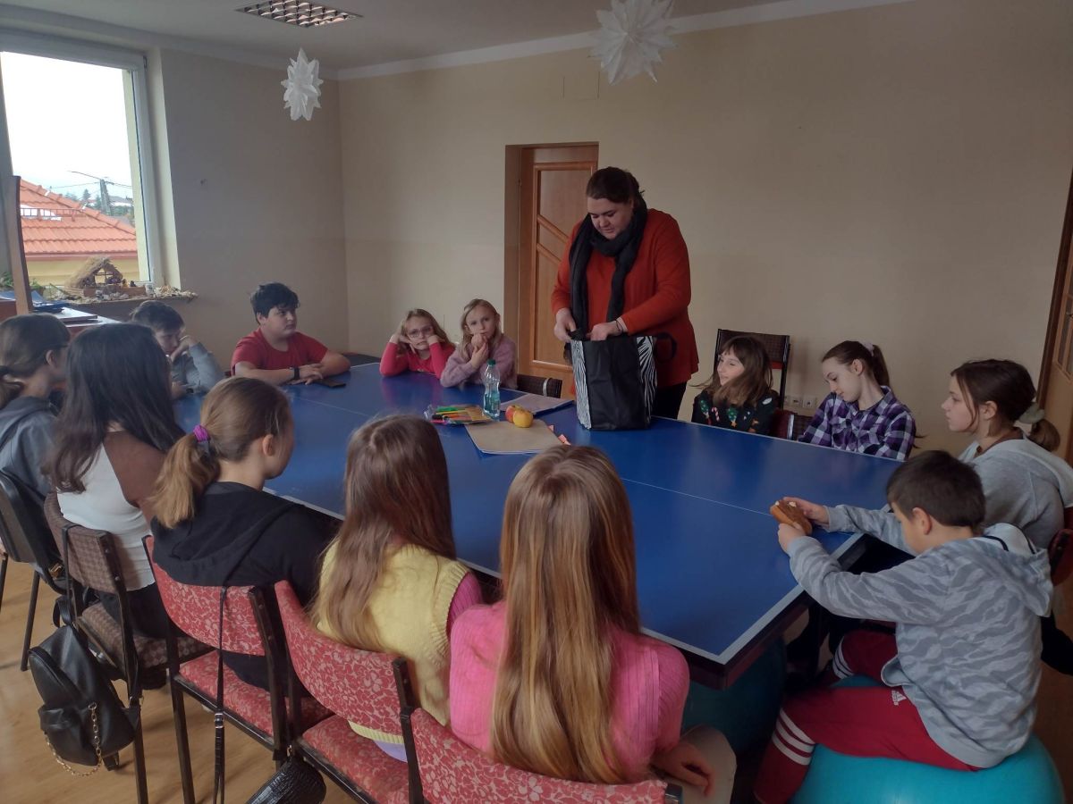 Ferie zimowe rozpoczęły się warsztatami z psychologiem - Panią Anetą Kułak, znaną i lubianą przez dzieci. Pani psycholog w bardzo ciekawy i łatwo przyswajalny sposób omawia trudne tematy dotyczące m.in. uzależnień, przemocy fizycznej i psychicznej. Podczas spotkania dzieci uzyskały informacje gdzie mogą szukać wsparcia oraz pomocy w razie różnych problemów.
