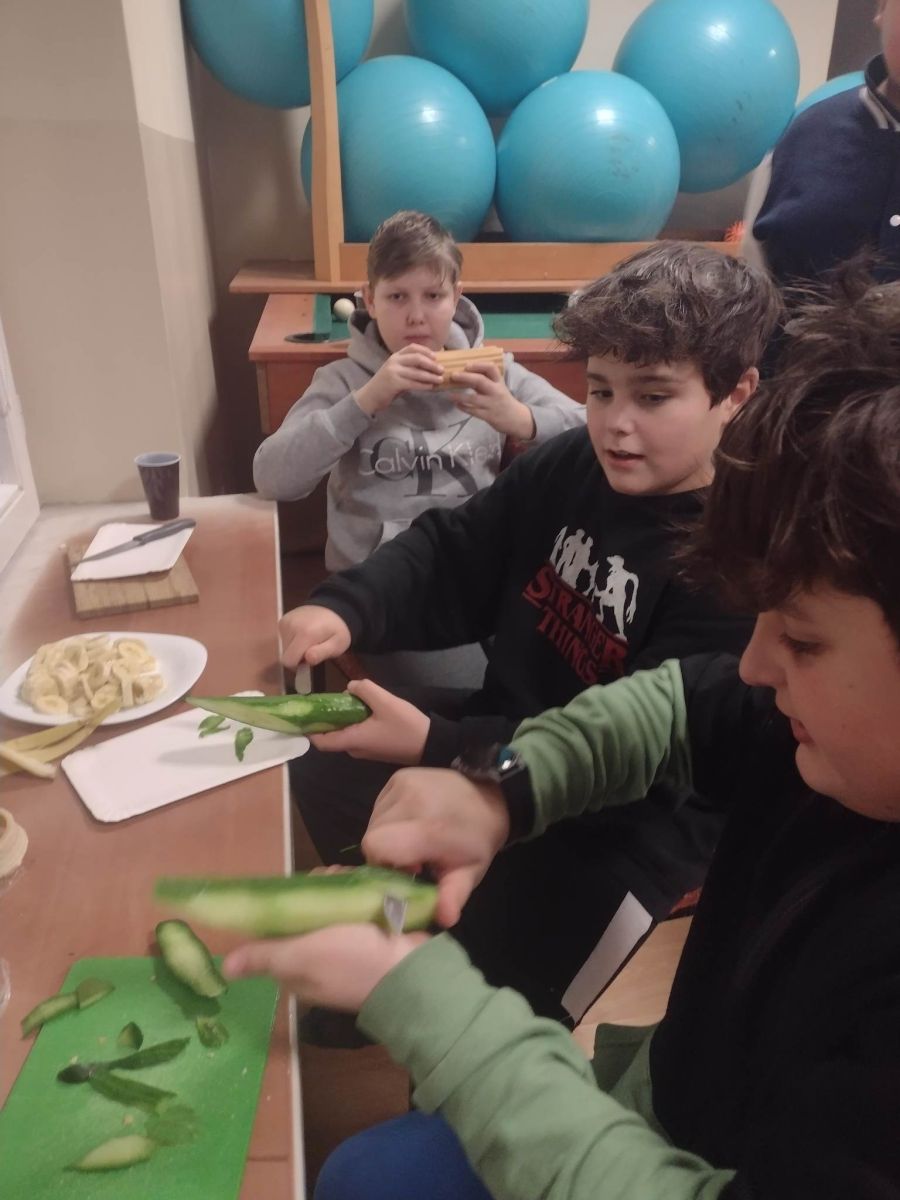Ciekawą formą warsztatów był film interaktywny- „ Otwórz się na pomoc- Przemoc”. W trakcie oglądania tego bardzo pouczającego filmu o problemie przemocy rówieśniczej, dzieci mogły decydować o dalszych losach bohaterki i jej szkolnych kolegów. Odbyły się również warsztaty zdrowego żywienia, podczas których dzieci samodzielnie pod okiem Pań instruktorek przygotowały zdrowy posiłek.