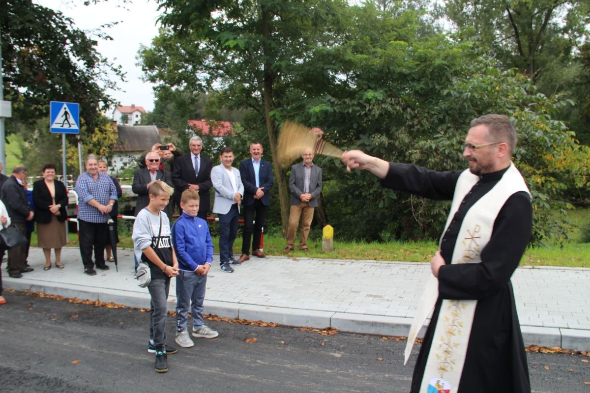 Kompleksowo zmodernizowana droga w Łazach przez dawny wąwóz prowadząca do domów jednorodzinnych, szkoły podstawowej oraz budynku wiejskiego została oficjalnie otwarta i poświęcona. Jest to jedno z najważniejszych zadań drogowych zrealizowanych na terenie gminy Rzezawa w ostatnich kilkunastu latach.