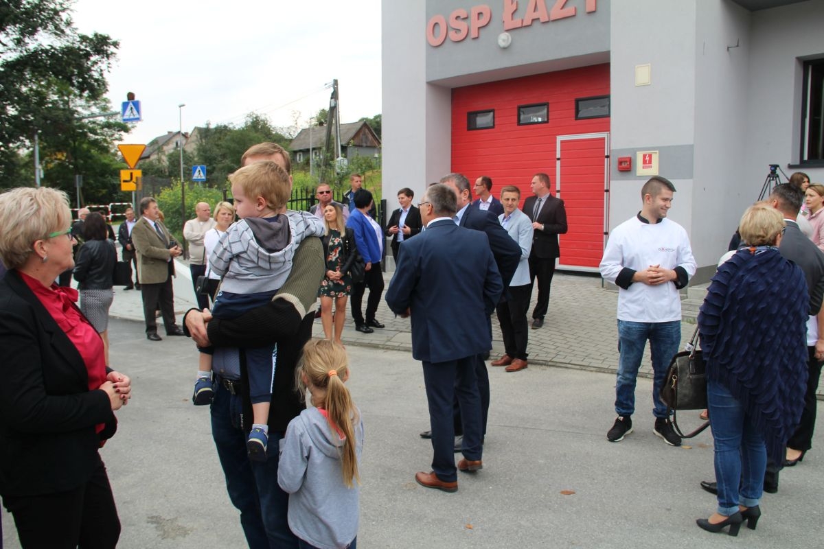 Gmina Rzezawa na kompleksową modernizację drogi w Łazach przeznaczyła niespełna 890 tys. zł, z czego ponad 270 tys. zł pozyskała z Rządowego Programu Rozwoju Gminnej i Powiatowej Infrastruktury Drogowej. Wójt Mariusz Palej oficjalnego otwarcia drogi dokonał poprzez symboliczne przecięcie wstęgi. Towarzyszyła mu w tym Przewodnicząca Rady Gminy Rzezawa Beata Puzia, sołtys Łazów Agnieszka Sotwin oraz radny powiatu bocheńskiego Stanisław Bukowiec.