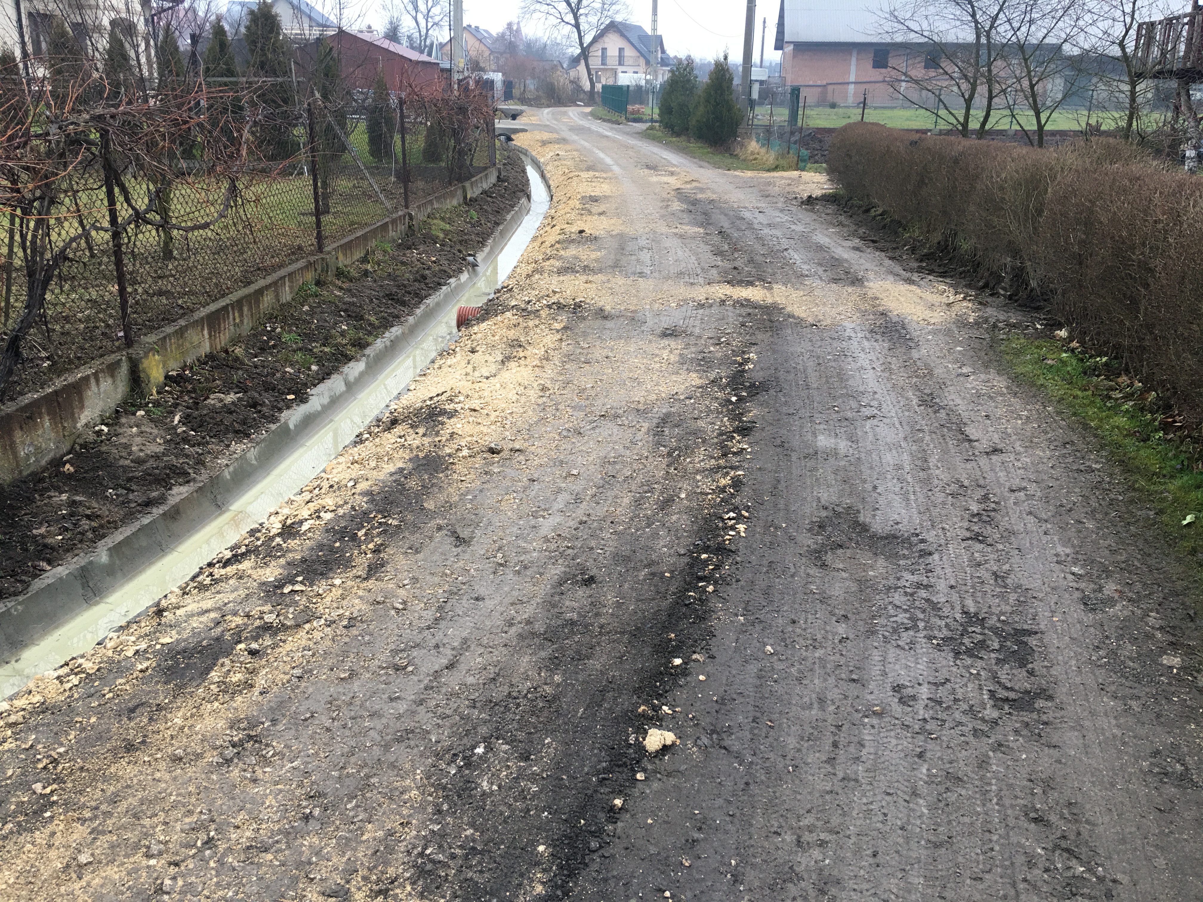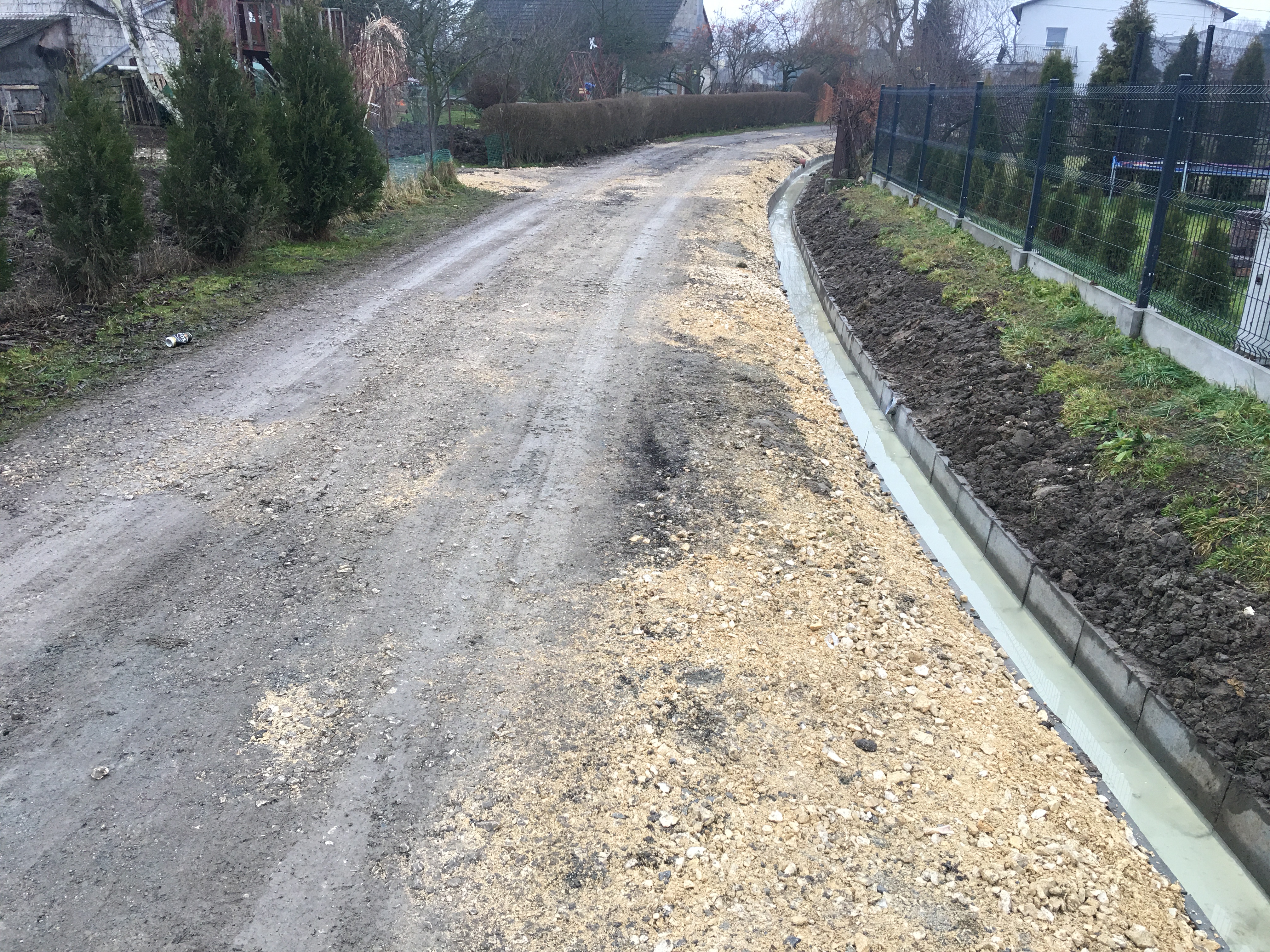 W ramach zadania wzdłuż ulicy Spokojnej wykonano umocnienie znajdującego się tam rowu. W tym celu wykorzystano betonowe koryta, które są doskonałym rozwiązaniem w budownictwie drogowym i umożliwiają sprawne odprowadzanie do kanalizacji nadmiaru gromadzącej się wody.