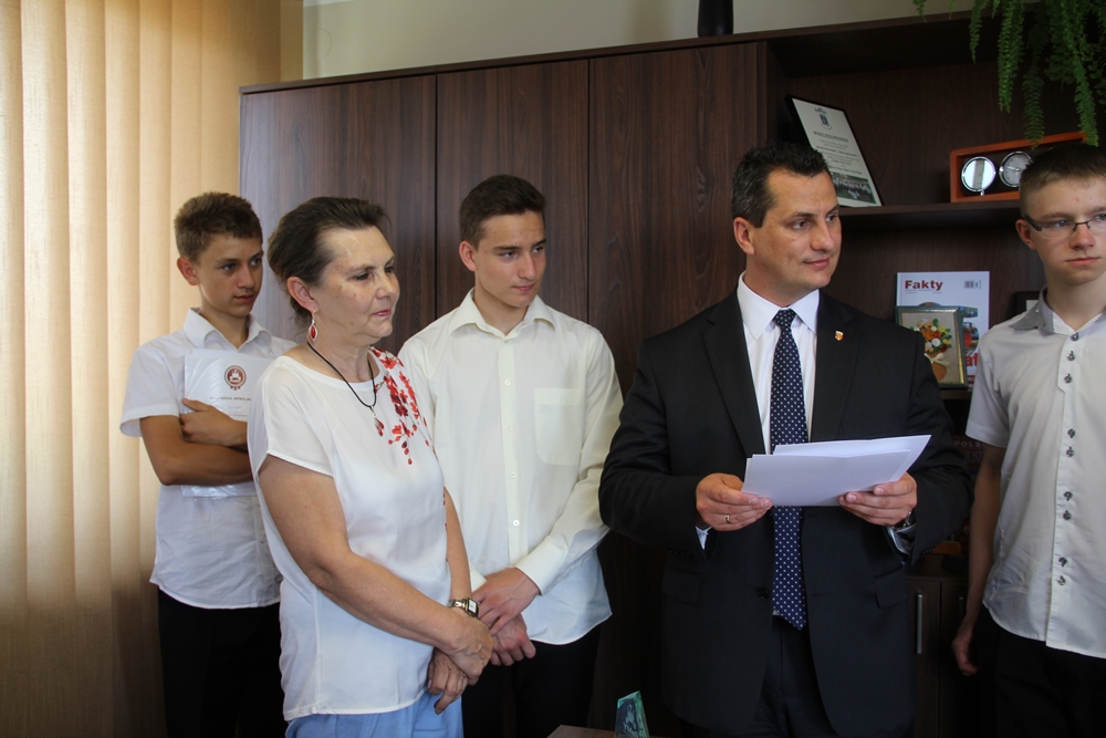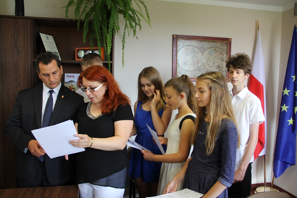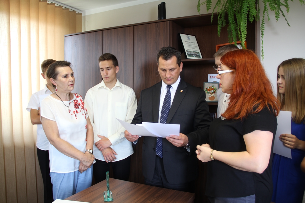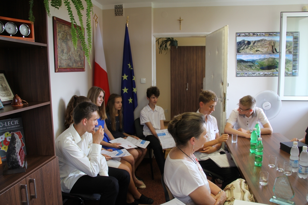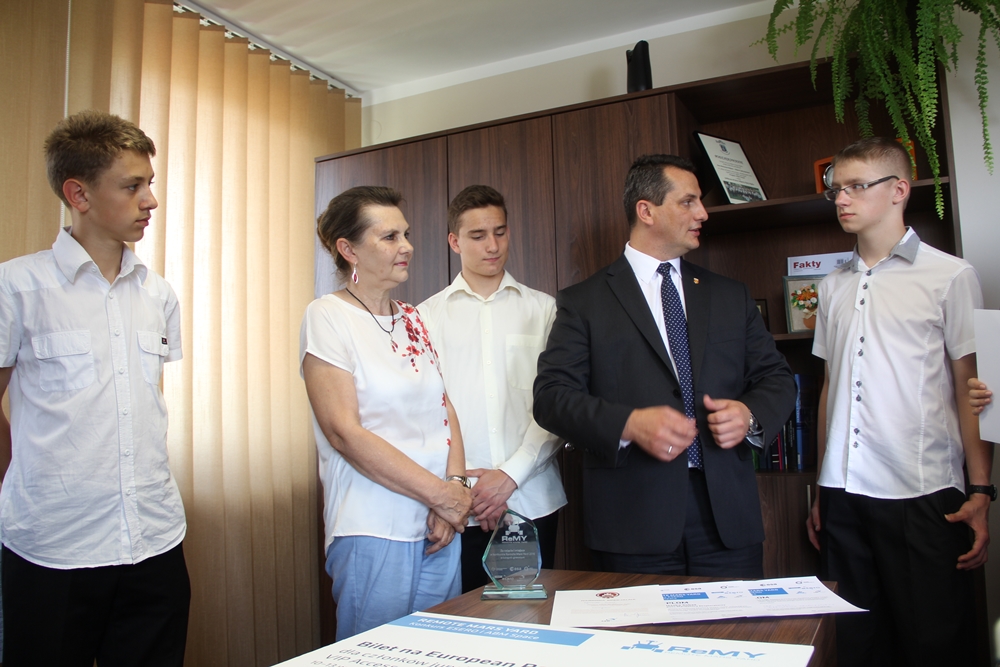 Po powrocie uczniowie z opiekunem Jolantą Sulma i dyrektor P.G. w Rzezawie panią Krystyną Klęsk spotkali się z panem Mariuszem Palejem, by podziękować i z dumą zaprezentować zdobyte nagrody z radością opowiadając o swoich zmaganiach.