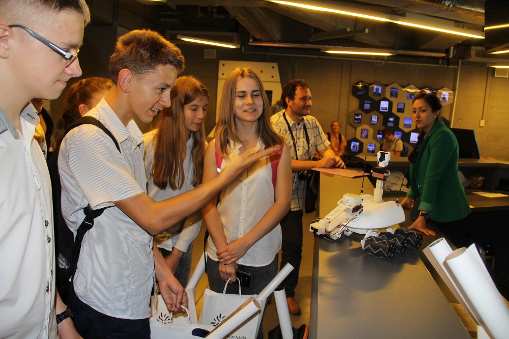 i uczestnicząc w projektach Europejskiej Agencji Kosmicznej. Do obsługi łazika uczniowie wykorzystali komputer z dostępem do Internetu.