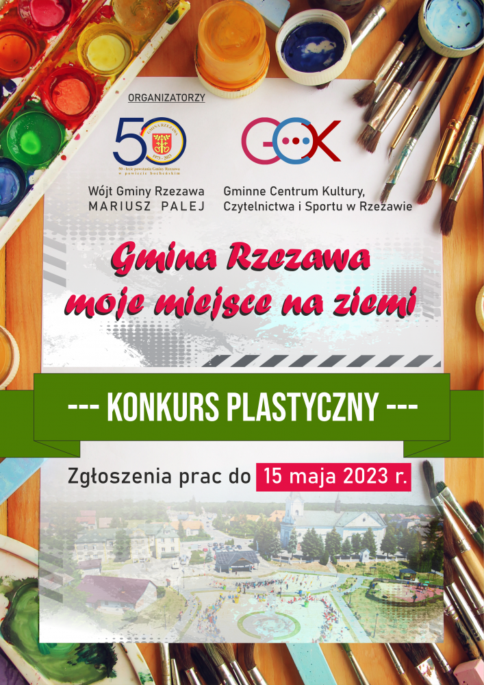 Wójt Gminy Rzezawa - Mariusz Palej i Gminne Centrum Kultury, Czytelnictwa i Sportu w Rzezawie zapraszają dzieci, młodzież i dorosłych do udziału w Konkursie Plastycznym ,,Gmina Rzezawa - moje miejsce na ziemi''.