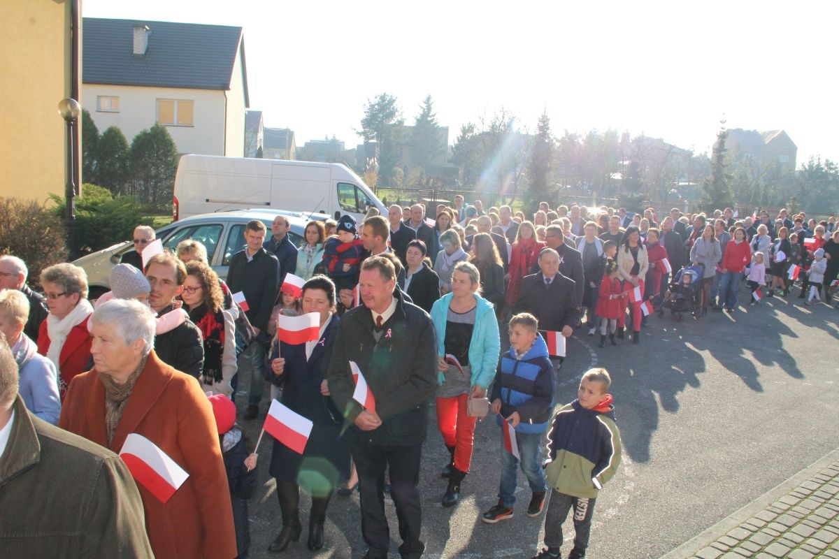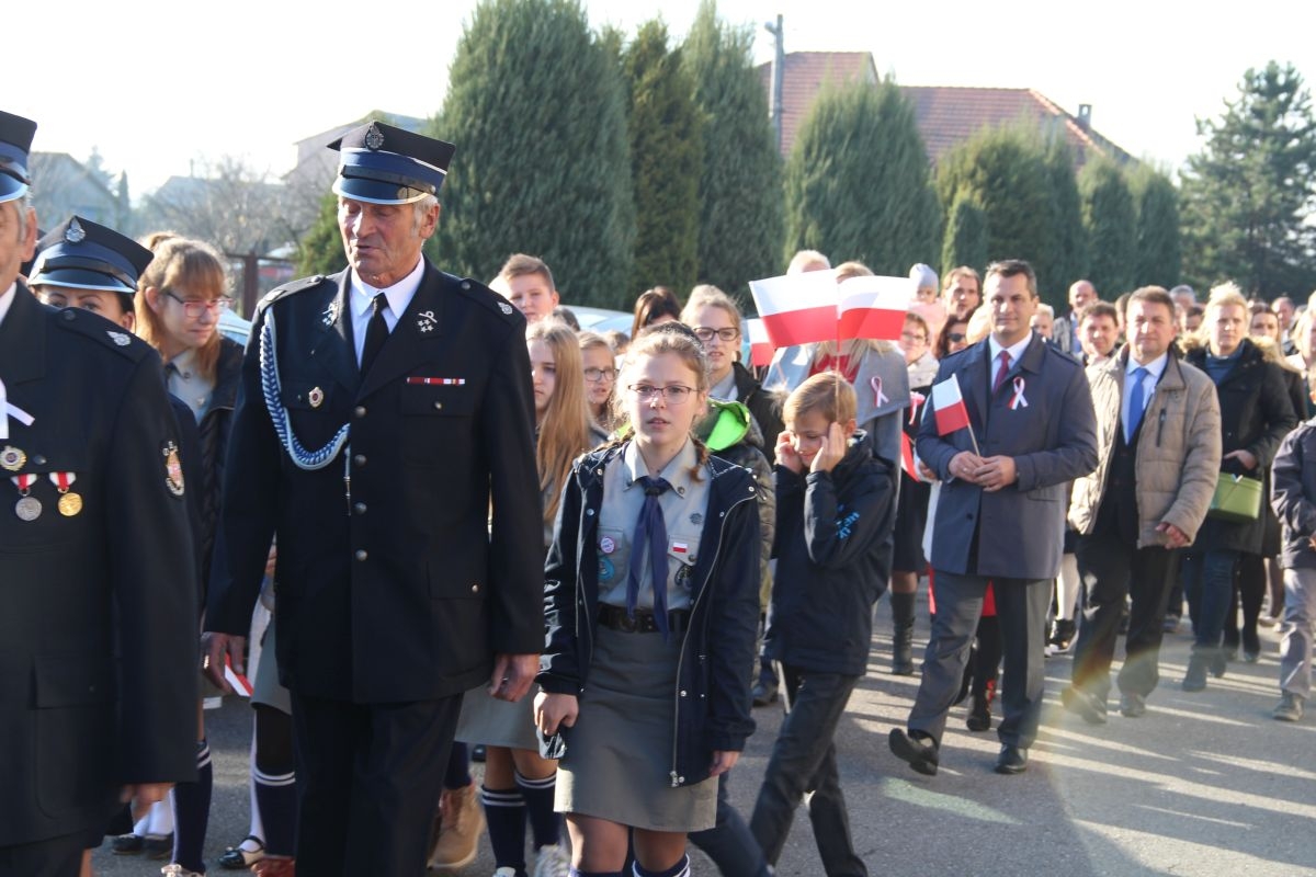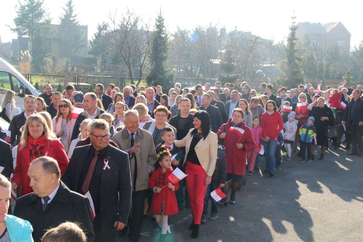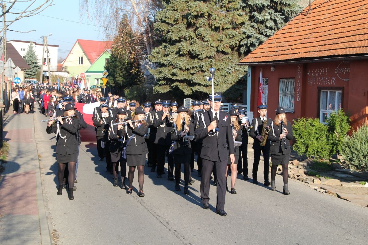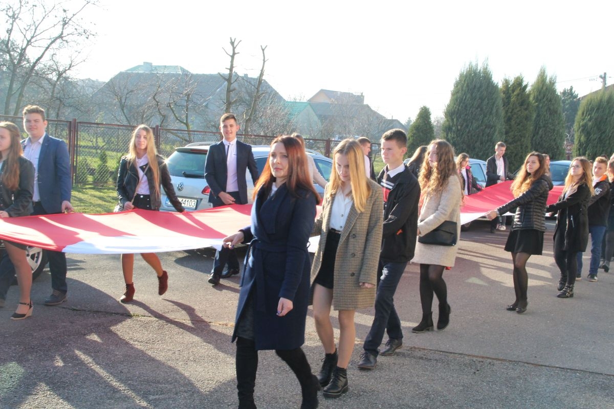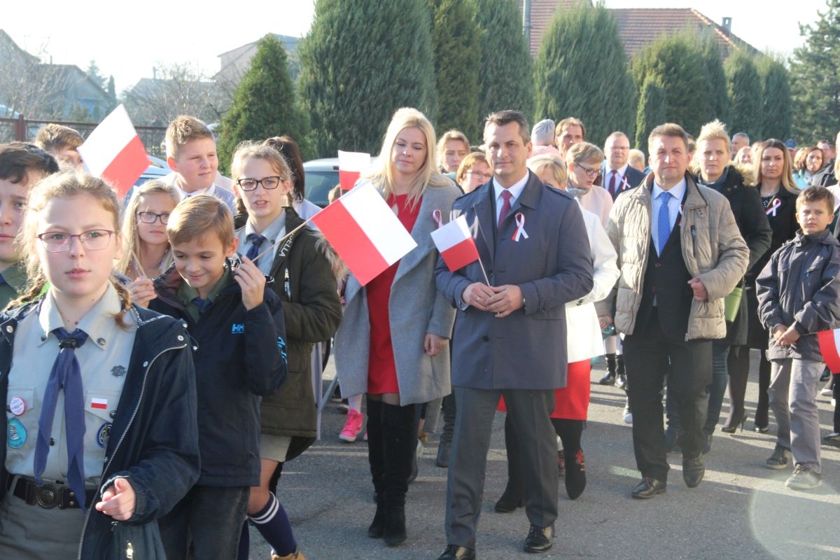 Po zakończeniu liturgii władze samorządowe, delegacje szkół i jednostek OSP wraz z pocztami sztandarowymi, a także przybyli mieszkańcy przy akompaniamencie Orkiestry Dętej z Okulic przemaszerowali do budynku Publicznej Szkoły Podstawowej w Rzezawie, gdzie miały miejsce dalsze uroczystości związane z celebracją Święta Niepodległości. W marszu wzięło udział w sumie kilkaset osób. Wiele z nich miało ze sobą biało-czerwone flagi. Największa z nich miała kilka metrów długości i była niesiona przez młodzież z terenu gminy Rzezawa.